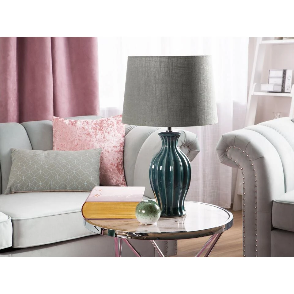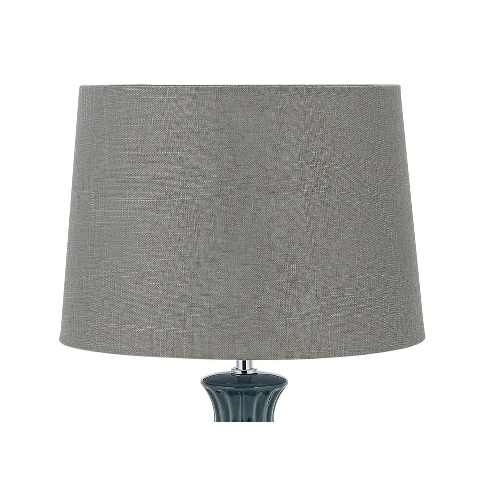 Tafellamp met charisma. Met deze tafellamp geef je elke kamer een elegante touch. De licht gebogen, donkergroene keramische basis heeft verticale groeven die mooi contrasteren met de gladde, grijsbruine polyester tint. Dankzij de donkere tinten straalt de lamp een aangenaam licht uit.