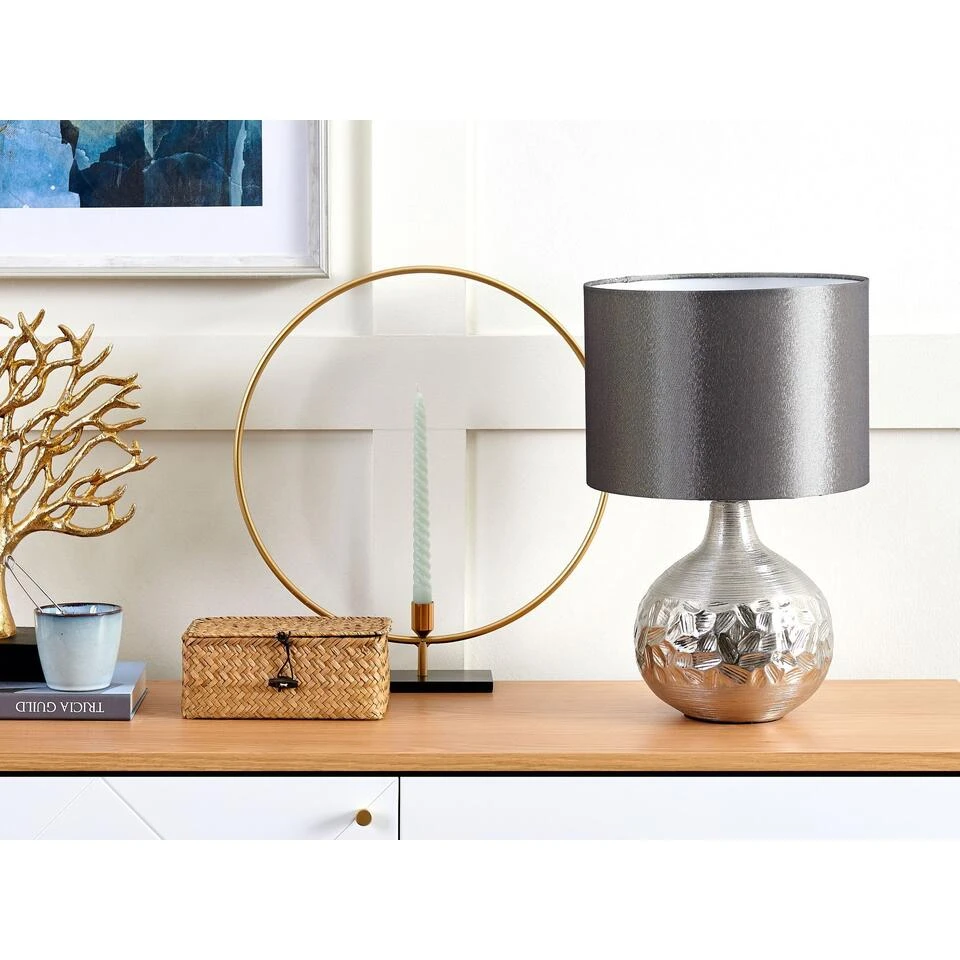 Fabelachtig mooie tafellamp in glanzend zilver. Hoge kwaliteit en verfijnde stijl komen samen in de tafellamp. De designlamp heeft een charmante basis van porselein, met daarin een subtiel motief. Het lijkt wat op een glanzende kerstbal. De ronde lampenkap van faux zijde doneert een aangename verlichting en zorgt voor een huiselijke sfeer.