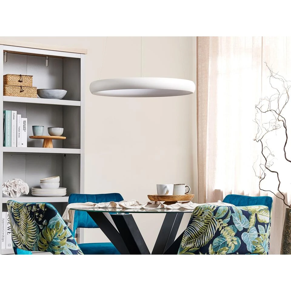 Hanglamp met Ingebouwde LED Verlichting. Geef je interieur een minimalistische maar toch sfeervolle verlichting met deze stijlvolle hanglamp. Het is gemaakt van hoogwaardig metaal en heeft een witte ring met ingebouwde LED-lampjes die een gezellige sfeer creëren. Met een regelbaar snoer past de lamp perfect in de woonkamer, keuken of eethoek.