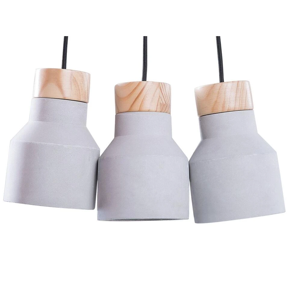 Moderne plafondlampen in contrastrijke kleuren van beton en grenenhout. De industriële clusterhanglamp heeft drie lampen gecombineerd met een ongebruikelijke mix van beton- en houttinten. De minimalistisch moderne on-trend stijl past goed in elk interieur. Helder licht en sfeer, eigentijds design en gezellige gloed – deze lamp heeft het allemaal en doet het geweldig in zowel de slaapkamer, eetkamer als woonkamer als bureaulamp.