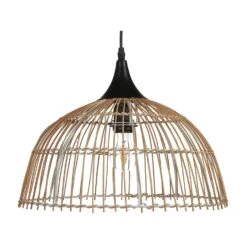 Ronde hanglamp met rotan kap. Als je wilt dat je huis meegaat met de huidige trends, dan mag deze rotan hanglamp daar niet ontbreken. Gemaakt van natuurlijk materiaal, zal het stuk zeker een hoogtepunt van elke kamer worden, vooral als het wordt gecombineerd met andere boho of rustieke elementen. Door de open structuur van de kap kan het omgevingslicht elke ruimte verlichten.