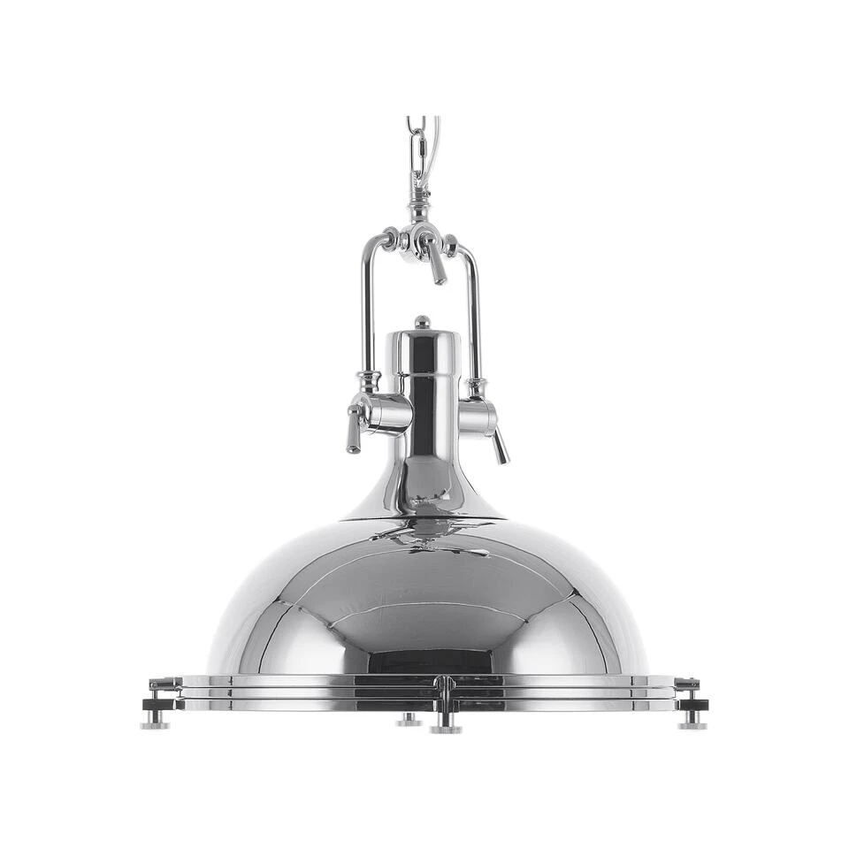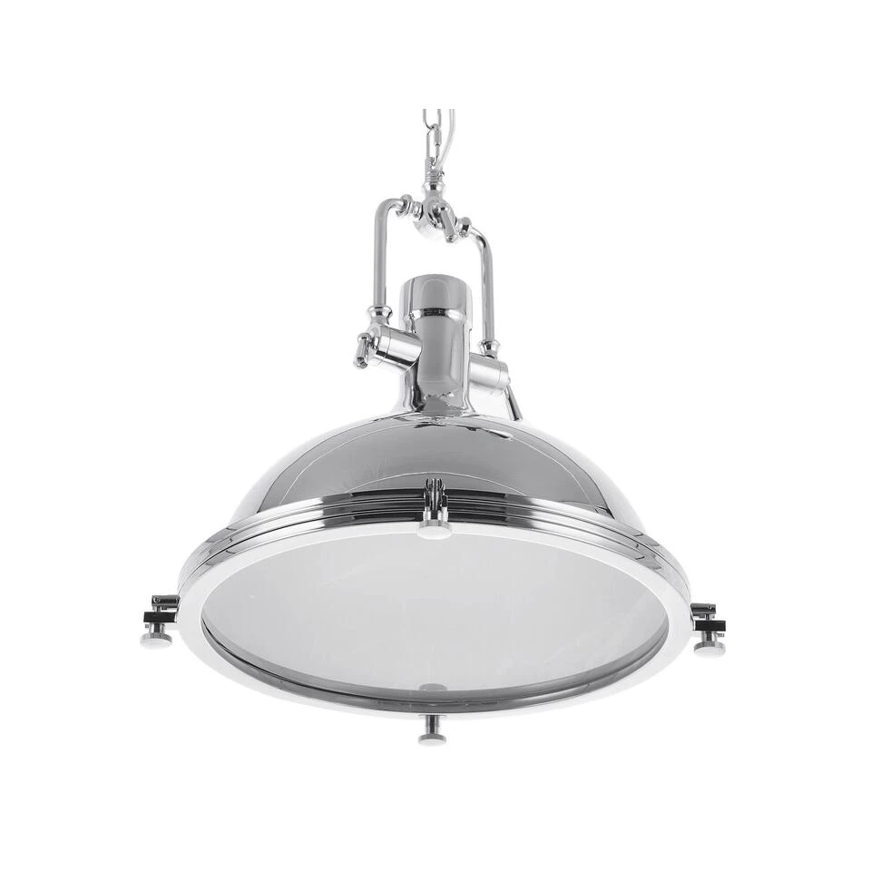 Hanglamp met industriele uitstraling van verchroomd metaal. De verfijnde vorm van deze hanglamp in een industrieel ontwerp past bij de trendy loftstijl. De ronde lampenkap is gemaakt van verchroomd metaal, met prachtige details zoals schroeven en kettingophanging. Aan de onderkant is de hanglamp gesloten met een diffuser van acryl, die verblindingsvrij licht geeft. De karakteristieke lamp is een zinvolle aanvulling voor elke stijl van inrichting. De lamp is bevestigd aan het plafond met een verchroomde kap. Een lichtbron is niet inbegrepen.