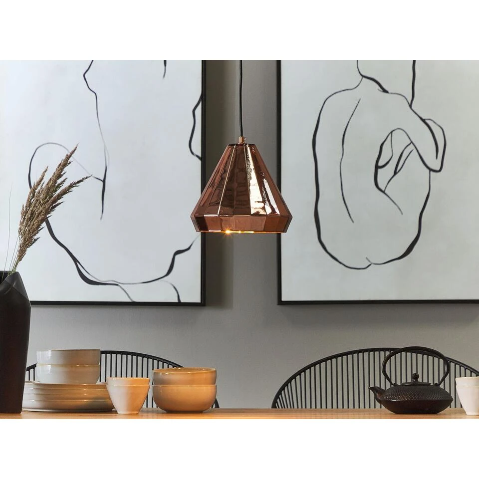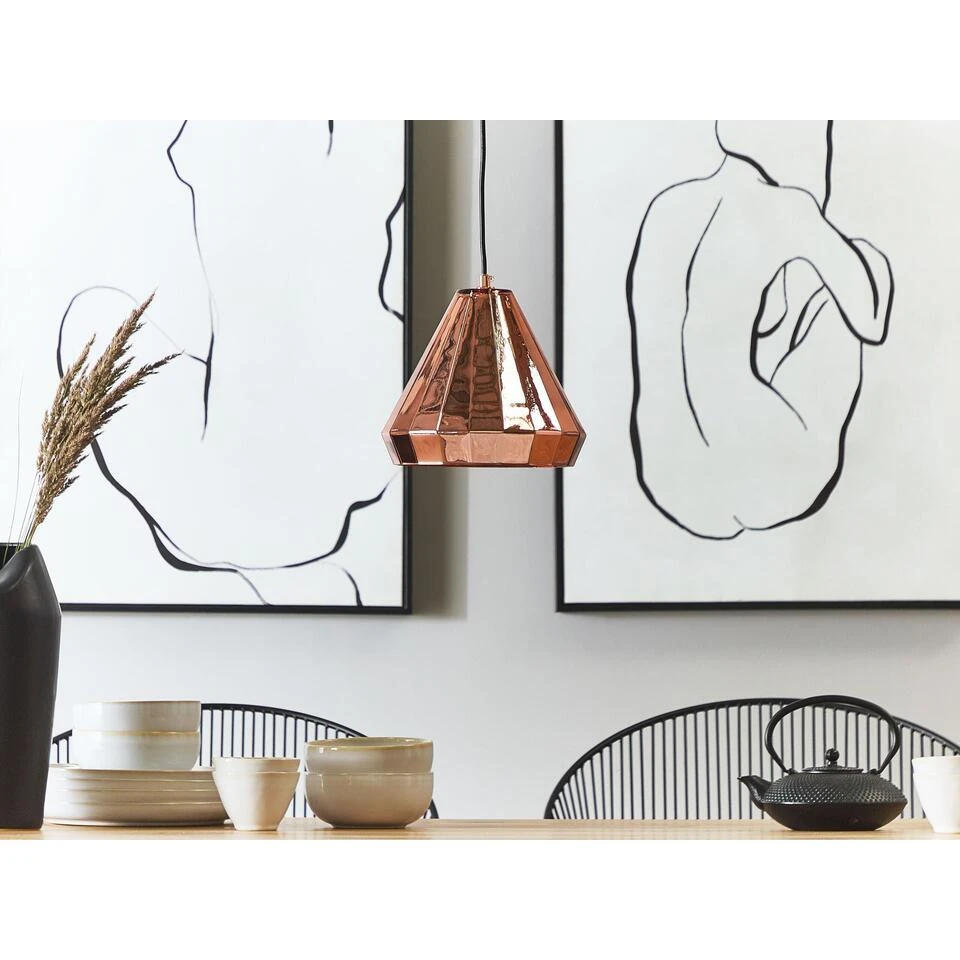 Decoratieve hanglamp in koperkleur. Voeg een oriëntaalse flair in een eigentijds ontwerp toe aan je interieur met deze hanglamp in een warme, koperen kleur. De slanke, traditionele vorm wordt mooi geaccentueerd door glanzend materiaal. De lamp ziet er geweldig uit als een enkel licht en kan zelfs worden uitgebreid in een set. Geschikt voor E 27, 60 watt lampen. Gloeilamp is niet inbegrepen.