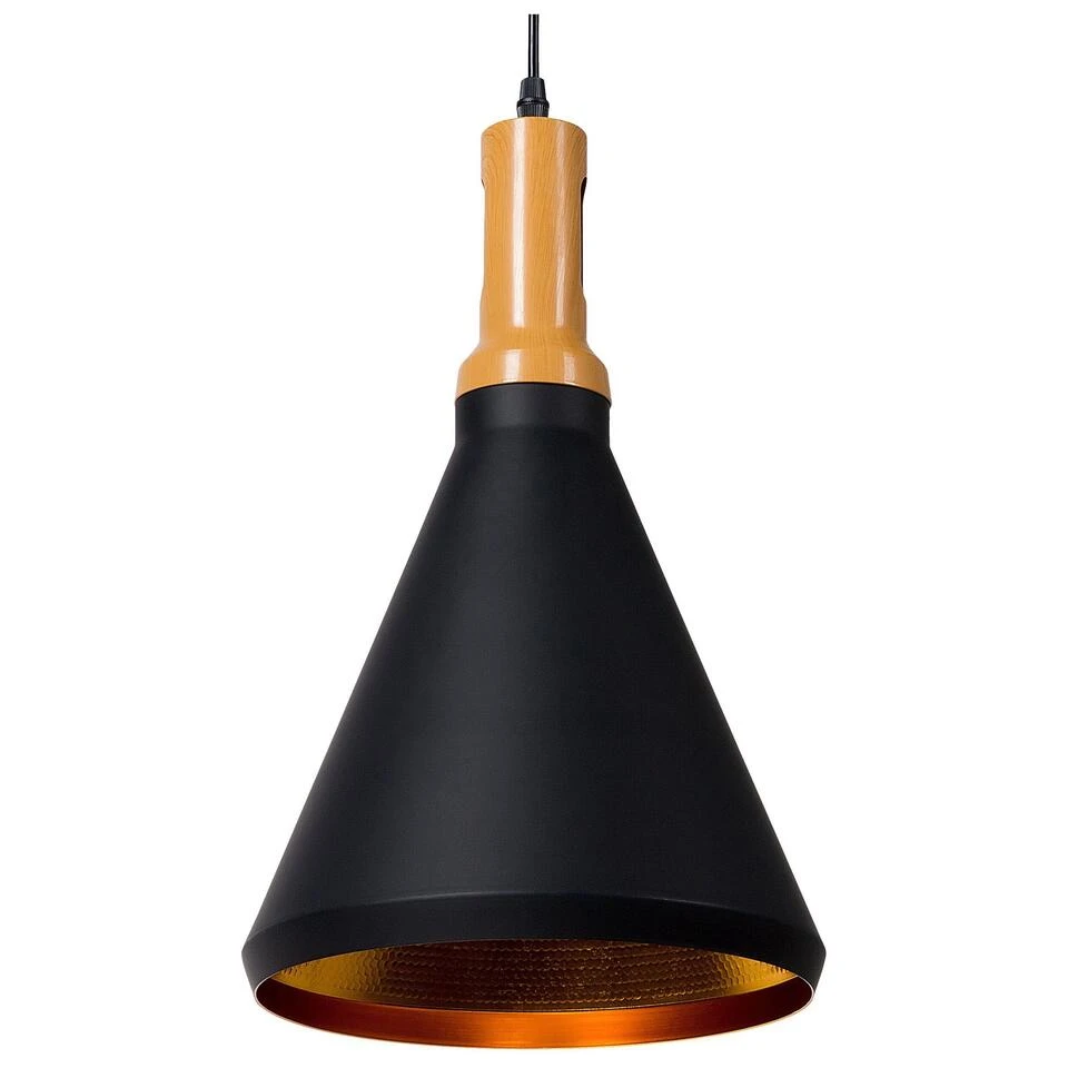 Moderne hanglamp van mat, zwart aluminium. Verfijnd en modern – deze hanglamp van stevig aluminium roept stralend licht op bij jou thuis. Of het nu boven de eet- of keukentafel, in de woonkamer of slaapkamer is, de veelzijdige armatuur past perfect bij een moderne interieurstijl. Zowel individueel of met meerdere lampen als een groep licht deze hanglamp letterlijk en figuurlijk jouw huis op. De ronde, conisch gevormde lampenkap in matzwart heeft een kleine bovenkant van kunststof met hout-optiek en heeft aan de binnenkant een mooie, glanzende gouden afwerking voor een warme gloed.