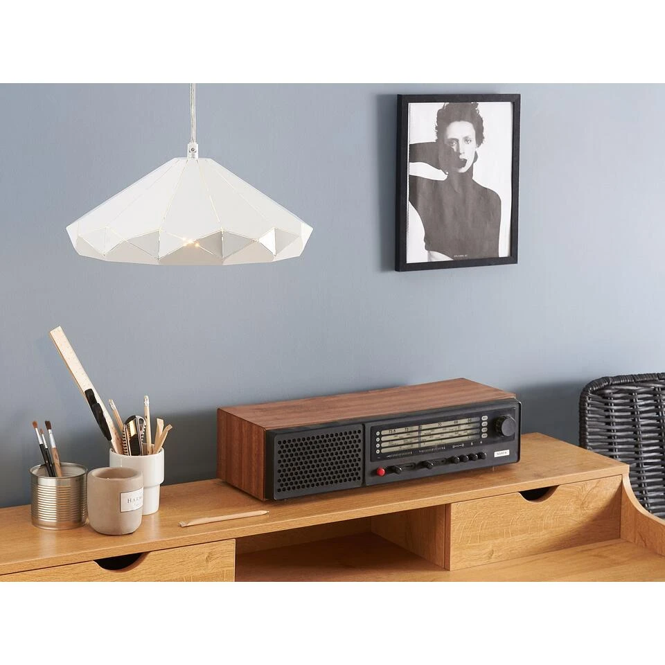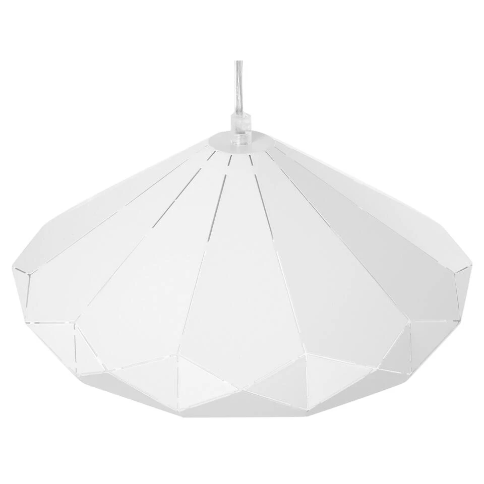 Opvallende hanglamp in witte kreukel-optiek. Een mooie, moderne hanglamp kan aan elke kamer in jouw huis meer sfeer toevoegen. De eenvoudige, ronde vorm van deze hanglamp wordt aangevuld door een opvouwbare look en met zijn subtiele witte kleur past hij in alle moderne woonstijlen. De lampenkap is gemaakt van stevig metaal, de lamp is voorzien van een transparante PVC-kabel en is geschikt voor lampen met een E27-fitting van maximaal 40W.