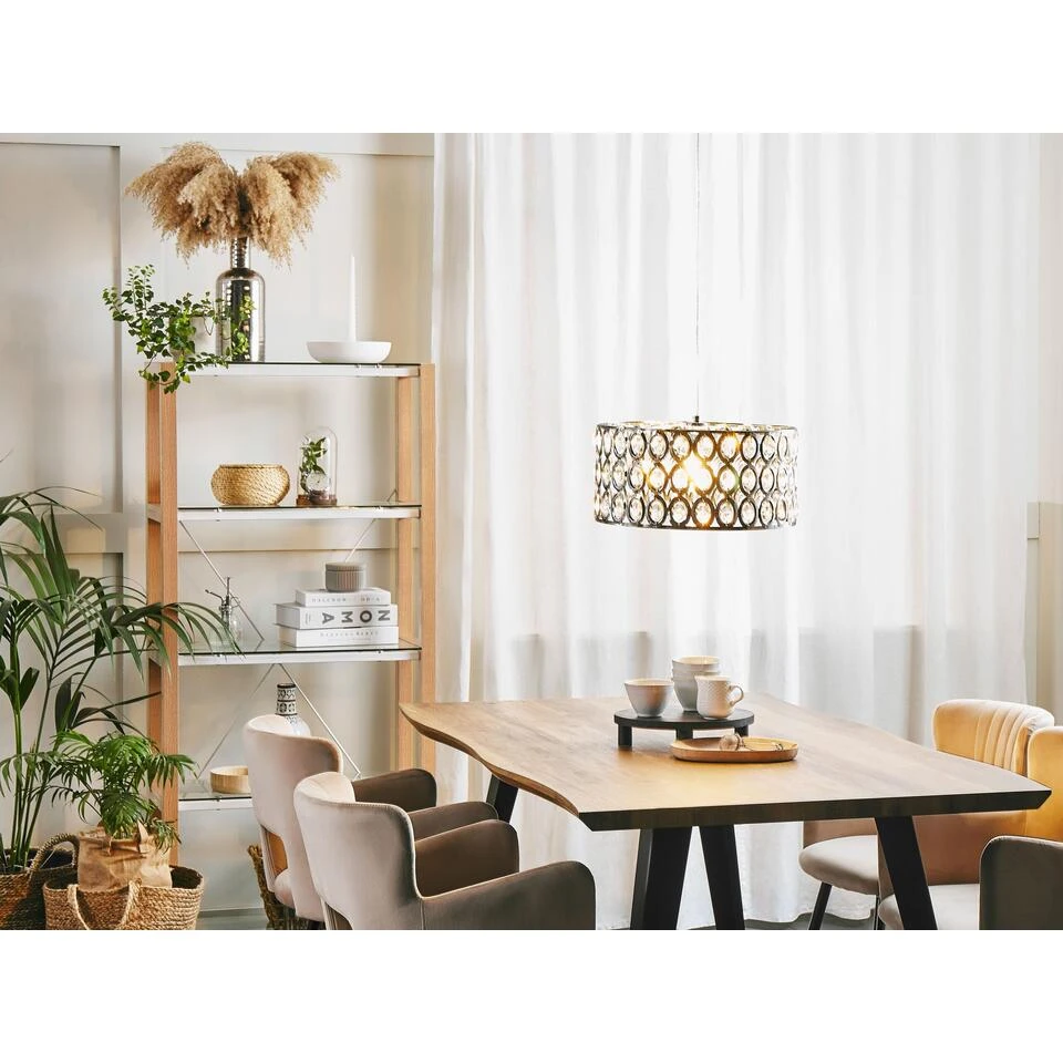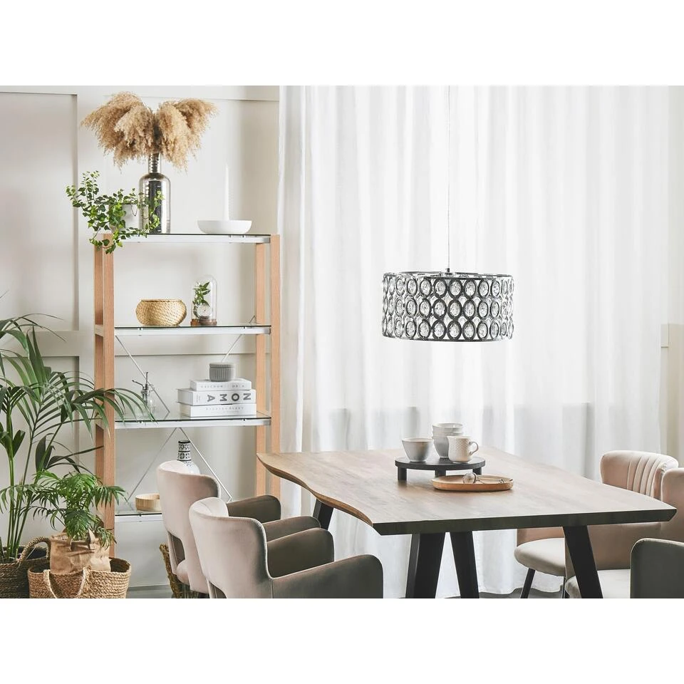 Ronde hanglamp met kristal-look. Sprankelend accessoire en felle lichtbron – deze mooie hanglamp past in verschillende inrichtingsstijlen, modern, speels of klassiek. De verchroomde metalen lampenkap beschikt over talrijke glinsterende steentjes die voor een mooi effect op de wanden zorgen, waardoor de gehele kamer gelijk een prachtige uitstraling heeft. De lamp is geschikt voor lampen met een E27-fitting van maximaal 40W.