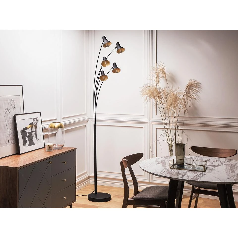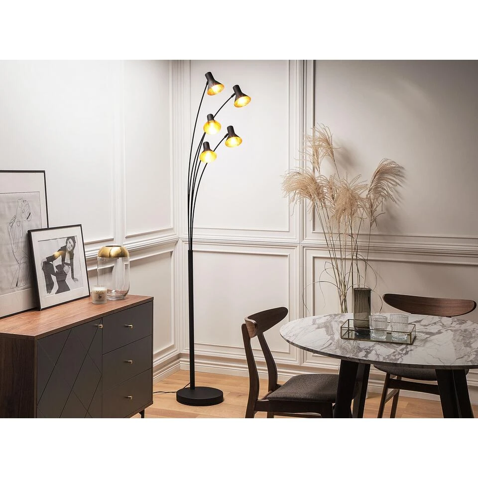 Minimalistische vloerlamp met vijf lichtpunten in zwart . Deze minimalistische en stijlvolle vloerlamp geeft je interieur een extra sfeer. Dankzij de productie van metaal in hoge kwaliteit kan dit product je jarenlang van dienst zijn. De lamp heeft vijf verschillende lichtpunten en is uitgerust met kabel.