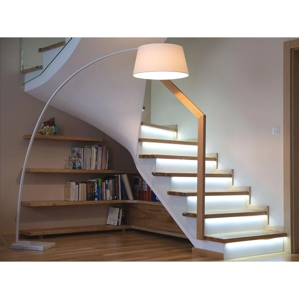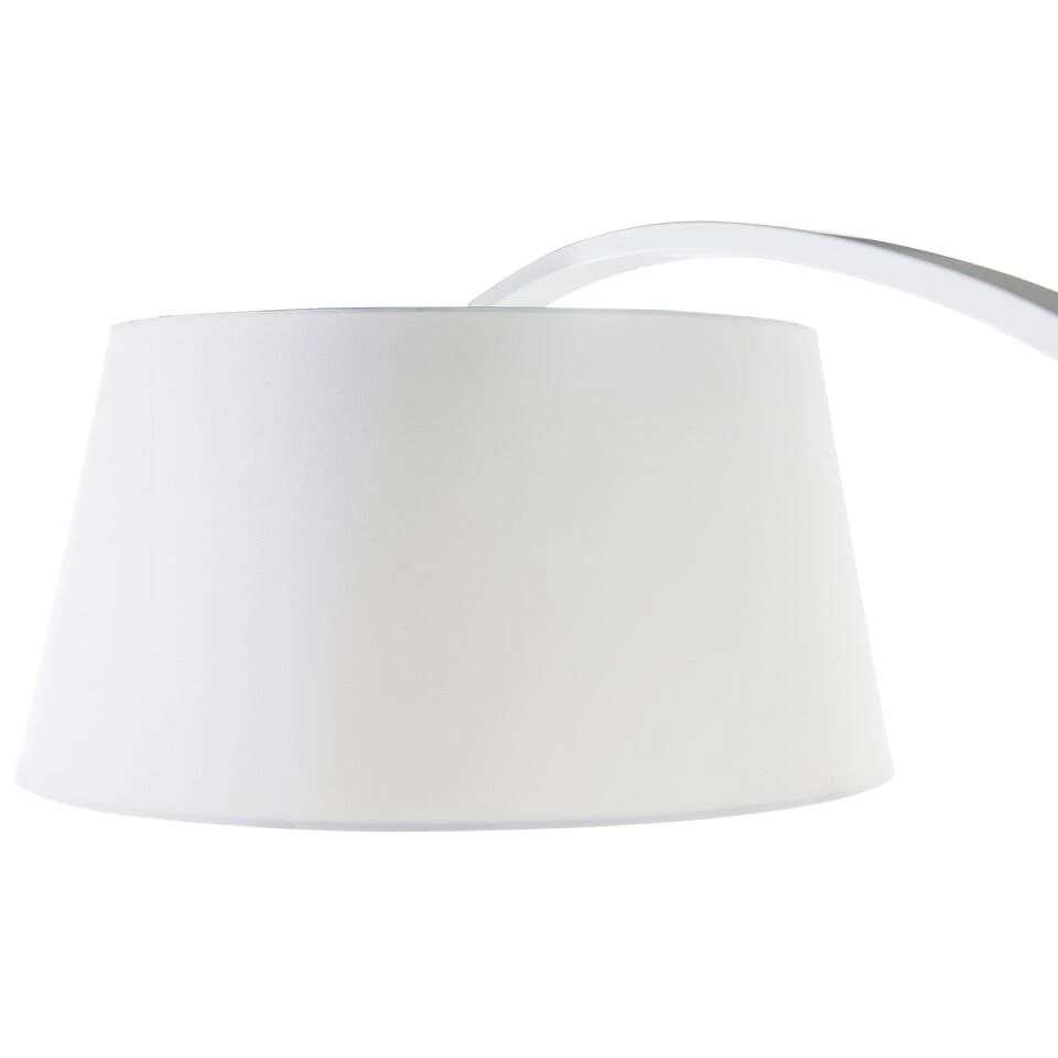 Stijlvolle witte vloerlamp. Deze elegante witte staande lamp is perfect geschikt voor de woonkamer. De lange witte boog maakt de lamp tot een heel bijzonder stuk. Bekroond wordt de lange hals met de mooie lampenkap, welke ook in de kleur wit is. Ondanks de lengte en hoogte staat de booglamp stevig op de grond, dankzij de voet van wit marmer. De lamp kan makkelijk aan en uit worden gedaan met behulp van de schakelaar aan de kabel van de lamp.
