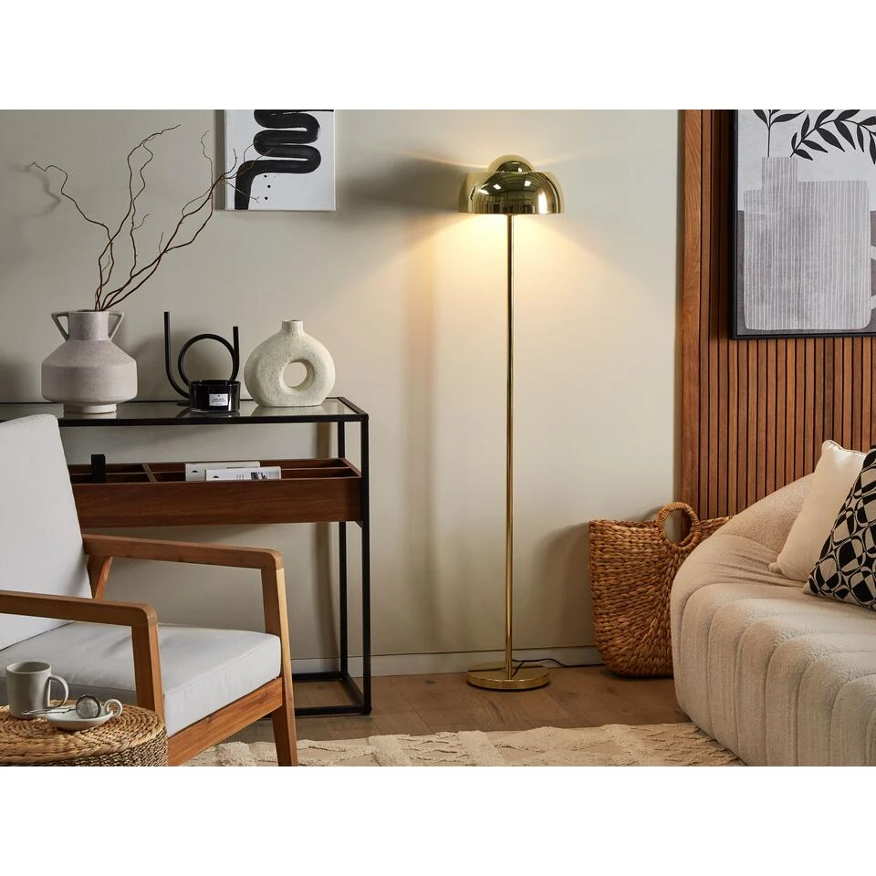 Moderne vloerlamp . Geef je woonruimte een nieuwe, originele look met deze staande lamp. Het past in elk modern, industrieel of eigentijds interieur. Het zal mooi opvallen en je woonkamer zacht verlichten met zijn sfeervolle licht. De reflecterende afwerking maakt de kamer vrolijker en zorgt voor een opvallend accent.