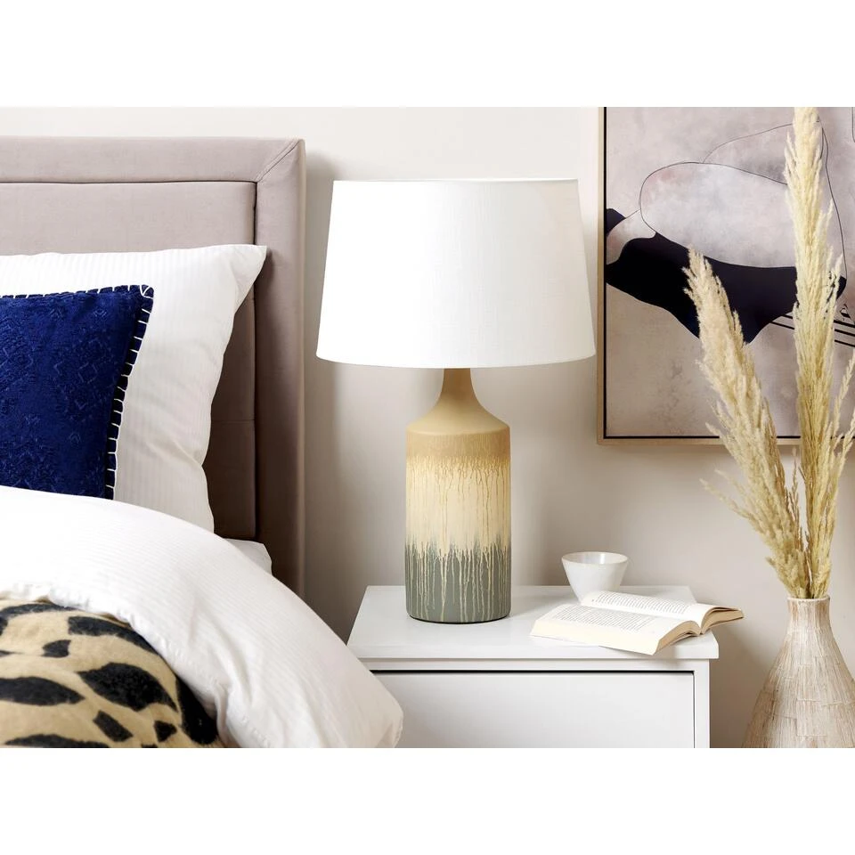 Moderne keramische lamp met veelkleurige voet. Als je wilt dat je interieur opvalt en de aandacht trekt, dan moet deze lamp er gewoon deel van uitmaken. De basis is gemaakt van hoogwaardig keramiek en heeft een unieke kleurencombinatie, terwijl de witte kap ervoor zorgt dat het meubel in veel verschillende interieurstijlen past. De lamp zal prachtig staan op een nachtkastje, of in je woonkamer, geplaatst op een bijzettafeltje.