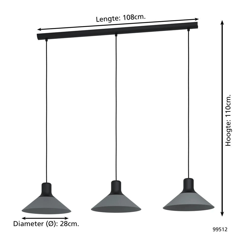 Hanglamp Abreosa van EGLO is met zijn elegante ontwerp een echt plaatje! Deze grijs met zwarte lamp is niet alleen functioneel maar ook nog eens heel sfeervol. Hanglamp Abreosa is een echte eyecatcher in elke woon- en/of werkruimte. Maak jouw minimalistische interieur helemaal compleet met deze lamp. De hoogte van de lamp kun je zelf bepalen tot maximaal 110 cm. Je past eenvoudig de hoogte van de draden aan voor je Abreosa aan het plafond hangt. Sluit deze lamp aan op een dimmer (niet meegeleverd) om op elk moment de juiste sfeer te creëren.
