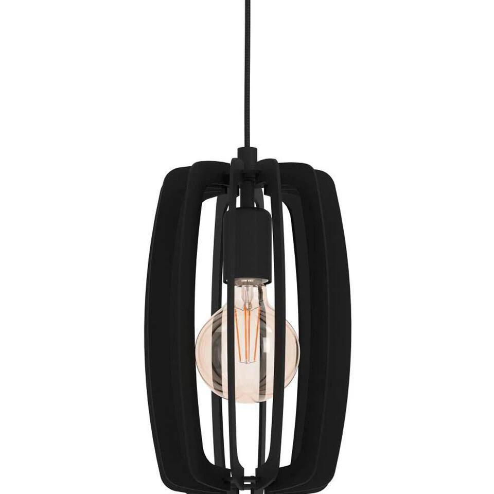 Uniek lichteffect door de houten lamellen en stijlvol, dat is hanglamp Bajazzara van EGLO. Dit pareltje weet aan elk plafond de show te stelen. Deze lamp is ideaal om jouw interieur een stijlvol en sfeervol tintje te geven. Hanglamp Bajazzara is door zijn zwarte kleur eenvoudig toepasbaar in ieder interieur. De hoogte van de lamp kun je zelf bepalen tot maximaal 110 cm. Je past eenvoudig de hoogte van de draden aan voor je Bajazzara aan het plafond hangt.