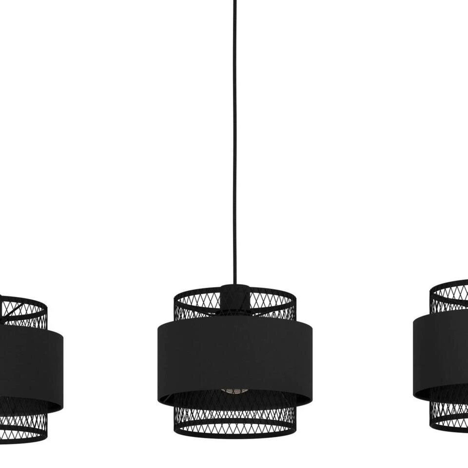 Hanglamp Bazely van EGLO is met zijn mysterieuze ontwerp een echt plaatje! Deze zwarte lamp is niet alleen functioneel maar ook nog eens heel sfeervol. Hanglamp Bazely is een echte eyecatcher in elke woon- en/of werkruimte. Maak jouw loft chique interieur helemaal compleet met deze lamp. De hoogte van de lamp kun je zelf bepalen tot maximaal 110 cm. Je past eenvoudig de hoogte van de draden aan voor je Bazely aan het plafond hangt.