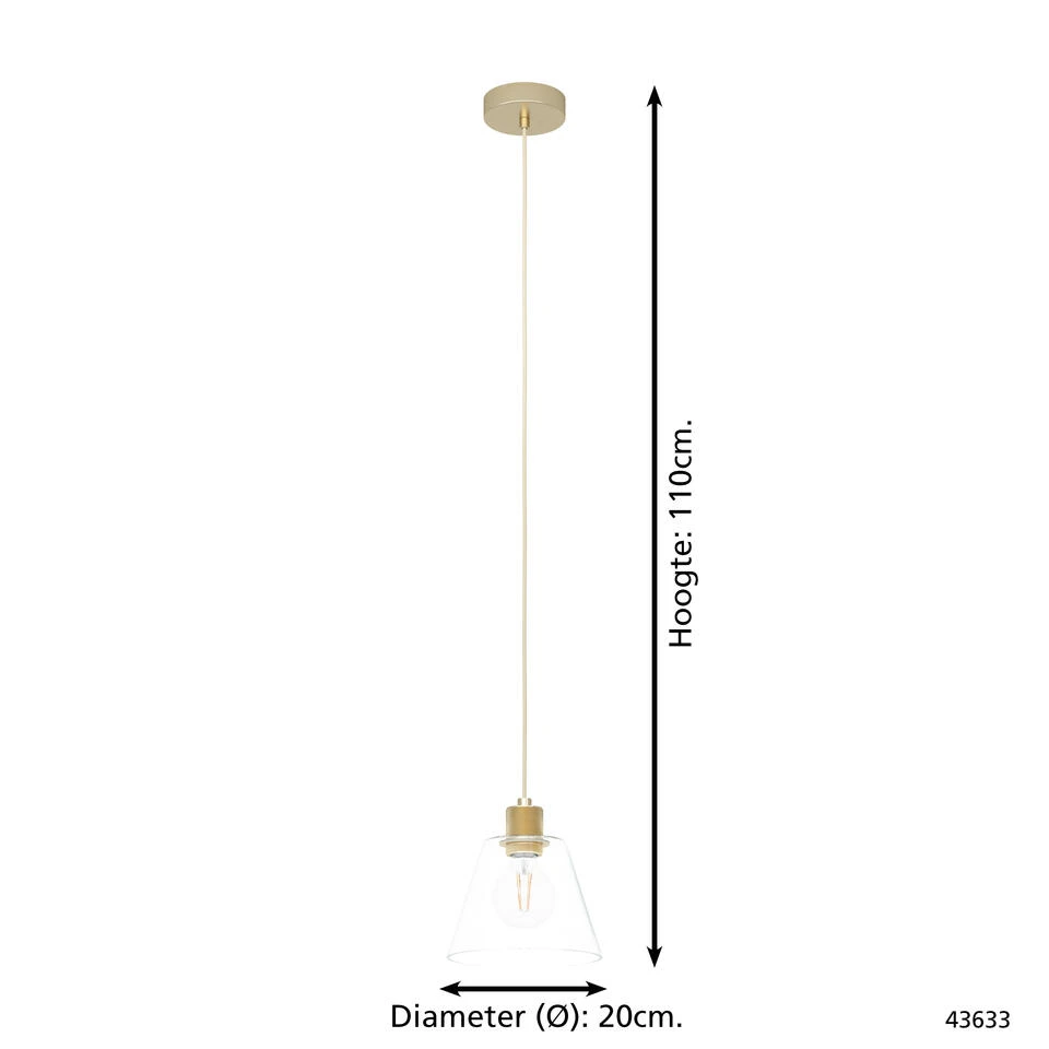 Hanglamp Copley van EGLO is met zijn stijlvolle ontwerp een echt plaatje! Deze gouden lamp is niet alleen functioneel maar ook nog eens heel sfeervol. Hanglamp Copley is een echte eyecatcher in elke woon- en/of werkruimte. Maak jouw klassieke interieur helemaal compleet met deze lamp. De hoogte van de lamp kun je zelf bepalen tot maximaal 110 cm. Je past eenvoudig de hoogte van de draden aan voor je Copley aan het plafond hangt. Sluit deze lamp aan op een dimmer (niet meegeleverd) om op elk moment de juiste sfeer te creëren.