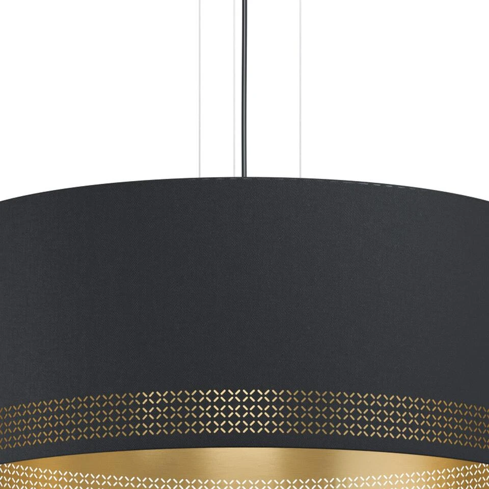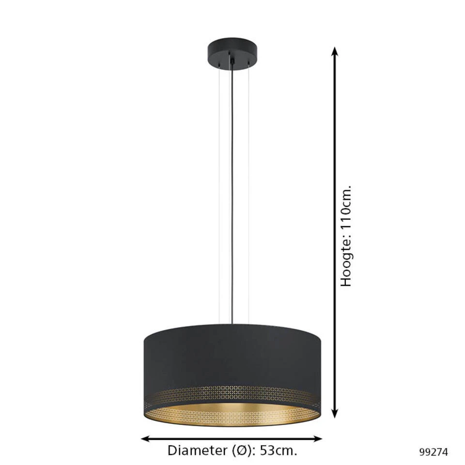 Hanglamp Esteperra van EGLO is met zijn subtiele ontwerp een echt plaatje! Deze zwart met goudkleurige lamp is niet alleen functioneel maar ook nog eens heel sfeervol. Hanglamp Esteperra is een echte eyecatcher in elke woon- en/of werkruimte. Maak jouw luxueuze interieur helemaal compleet met deze lamp. De hoogte van de lamp kun je zelf bepalen tot maximaal 110 cm. Je past eenvoudig de hoogte van de draden aan voor je Esteperra aan het plafond hangt. Sluit deze lamp aan op een dimmer (niet meegeleverd) om op elk moment de juiste sfeer te creëren.