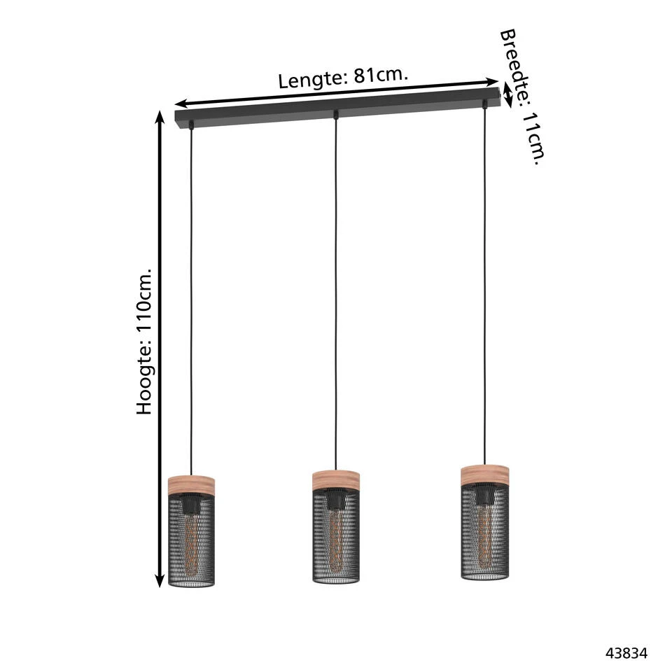 ⢠IndustriÍle hanglamp van H 110 x L 81 x B 11 cm