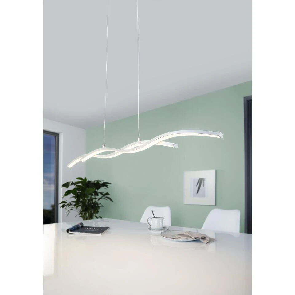 De EGLO Lasana 2 is een hanglamp gemaakt van staal met aluminium. De lamp heeft een chromen afwerking met een lengte van 87,5cm. De lamp heeft twee geïntegreerde LED modules met een wattage van ieder 10,3W. De lamp geeft warm wit licht (3000K) en is niet dimbaar. De strakke hanglamp Lasana 2 past goed in een modern interieur.
