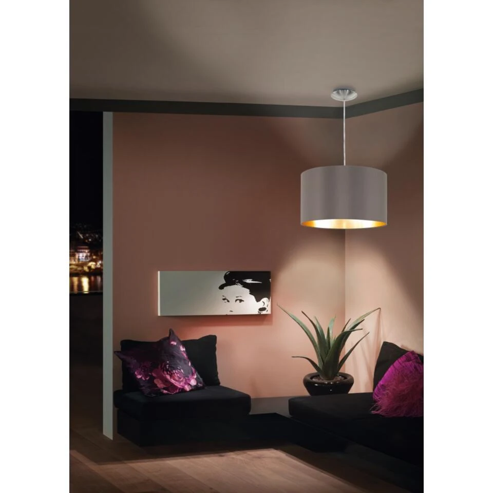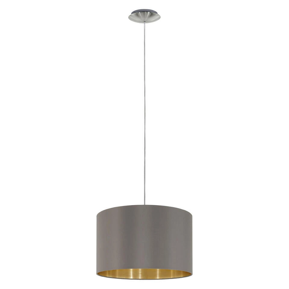 De EGLO hanglamp Maserlo is gemaakt van staal met een nikkel-matte afwerking. De cappuccino gekleurde kap met goud gecoate binnenkant heeft een sfeelvolle en glamoureuze uitstraling. Deze hanglamp met E27 fitting wordt geleverd exclusief lichtbron en is geschikt voor een maximaal wattage van 25W. De Maserlo is uitermate geschikt voor toepassing in diverse woon- en kantoorruimtes.Kenmerken EGLO Maserlo: