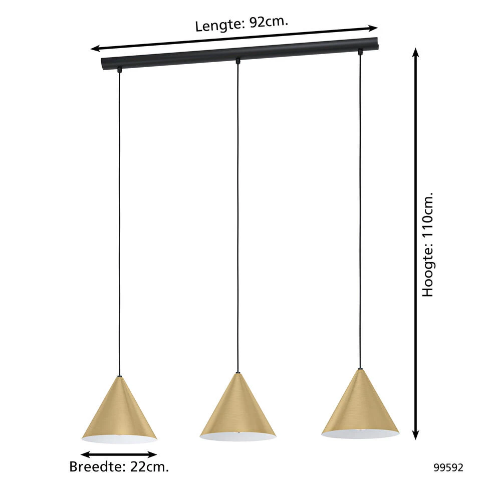Hanglamp Narices van EGLO is met zijn glanzende ontwerp een echt plaatje! Deze goud met zwarte lamp is niet alleen functioneel maar ook nog eens heel sfeervol. Hanglamp Narices is een echte eyecatcher in elke woon- en/of werkruimte. Maak jouw luxueuze interieur helemaal compleet met deze lamp. De hoogte van de lamp kun je zelf bepalen tot maximaal 110 cm. Je past eenvoudig de hoogte van de draden aan voor je Narices aan het plafond hangt. Sluit deze lamp aan op een dimmer (niet meegeleverd) om op elk moment de juiste sfeer te creëren.