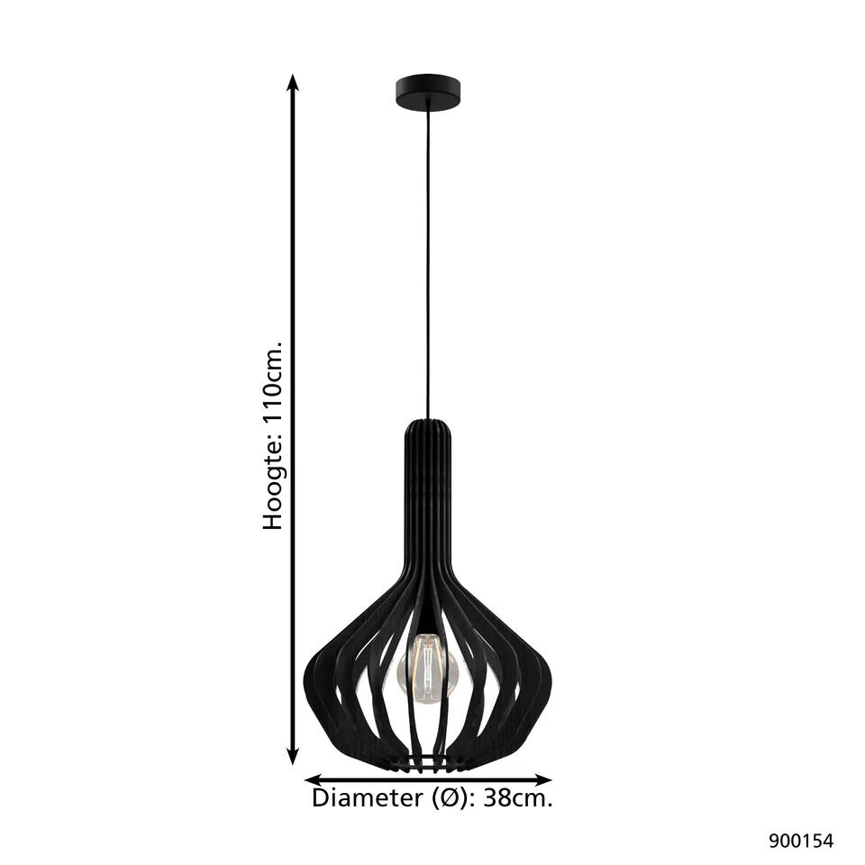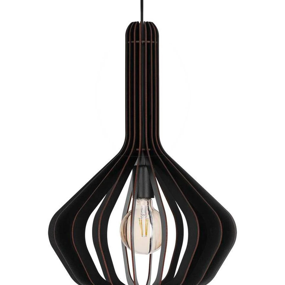 Gemaakt van hout en natuurlijk, dat is hanglamp Velasco van EGLO. Dit pareltje weet aan elk plafond de show te stelen. Deze lamp is ideaal om jouw interieur een landelijk en trendy tintje te geven. Hanglamp Velasco is door zijn zwarte kleur eenvoudig toepasbaar in ieder interieur. De hoogte van de lamp kun je zelf bepalen tot maximaal 110 cm. Je past eenvoudig de hoogte van de draden aan voor je Velasco aan het plafond hangt.