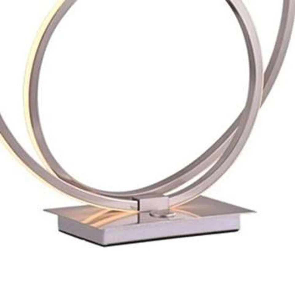 Deze LED tafellamp verbruikt 18 watt en geeft 1250 Lumen aan warm wit licht (2700 Kelvin). Op het armatuur bevindt zich een touch dimmer om de lichthoeveelheid in 3 stappen te regelen. De hoogte van deze tafellamp is 38 cm en de breedte is 35 cm. Kleur: mat-chroom..