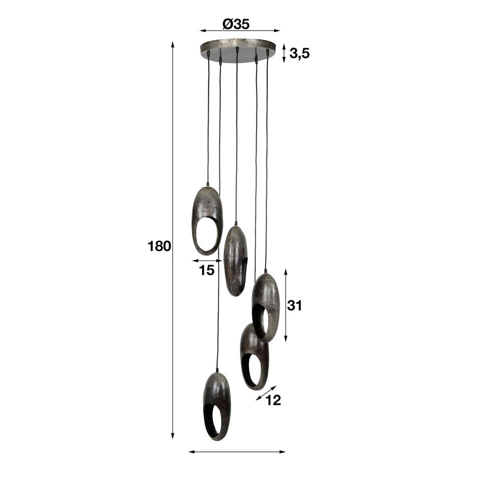 Giga Meubel Hanglamp 5-Lichts – Getrapt – Oud Zilver – Lamp Open Oog