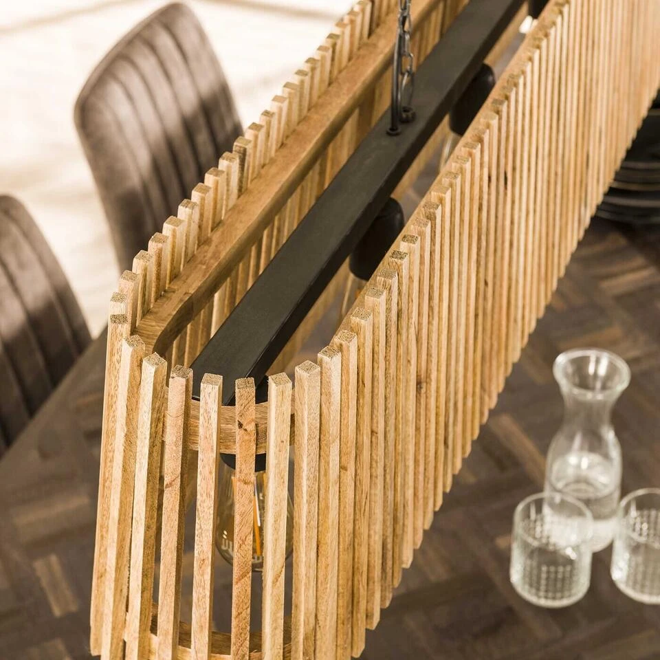 Deze trendy hanglamp ‘launch’ is uitgevoerd in mango hout. De houten spijlen geven een sfeervolle licht verdeling en maakt deze lamp een echte eye-catcher! De lamp is tot 150 cm in hoogte verstelbaar. Er wordt aanbevolen LED lichtbron (8450) te gebruiken. Hanglamp 5L Launch Rechthoekig Massief Mango Naturel – Giga Meubel. Is dit het artikel voor jou? Bestel Hanglamp 5L Launch Rechthoekig Massief Mango Naturel dan nu direct!