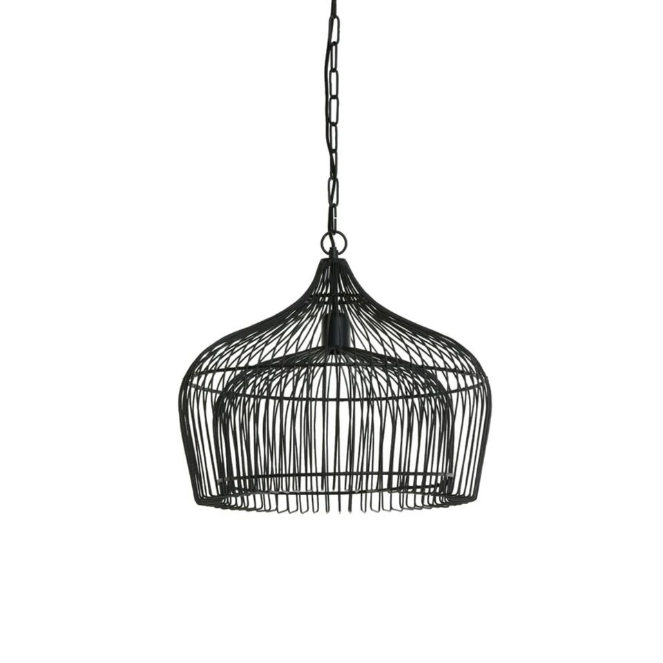 Ben jij nog op zoek naar de perfecte hanglamp voor jouw moderne interieur? Zoek dan niet verder. Hanglamp Kristel is een moderne lamp gemaakt van metaal in een mat zwarte kleur. De kap van de lamp bestaat uit allemaal metalen draden, wat zorgt voor een uniek effect. Het licht schijnt door deze metaaldraden en creëert een gaaf patroon op het plafond. Deze hanglamp is een perfecte toevoeging aan de hal of de woonkamer. Weet jij al waar je hem gaat hangen? Het lichtpunt van de lamp is dimbaar wanneer er een dimmer is ingebouwd in jouw lichtsysteem en gebruik wordt gemaakt van een dimbare lichtbron. De afmeting van de lamp is Ø58×47 cm. Dit is een product van het trendy merk Light & Living.