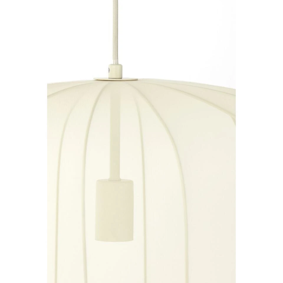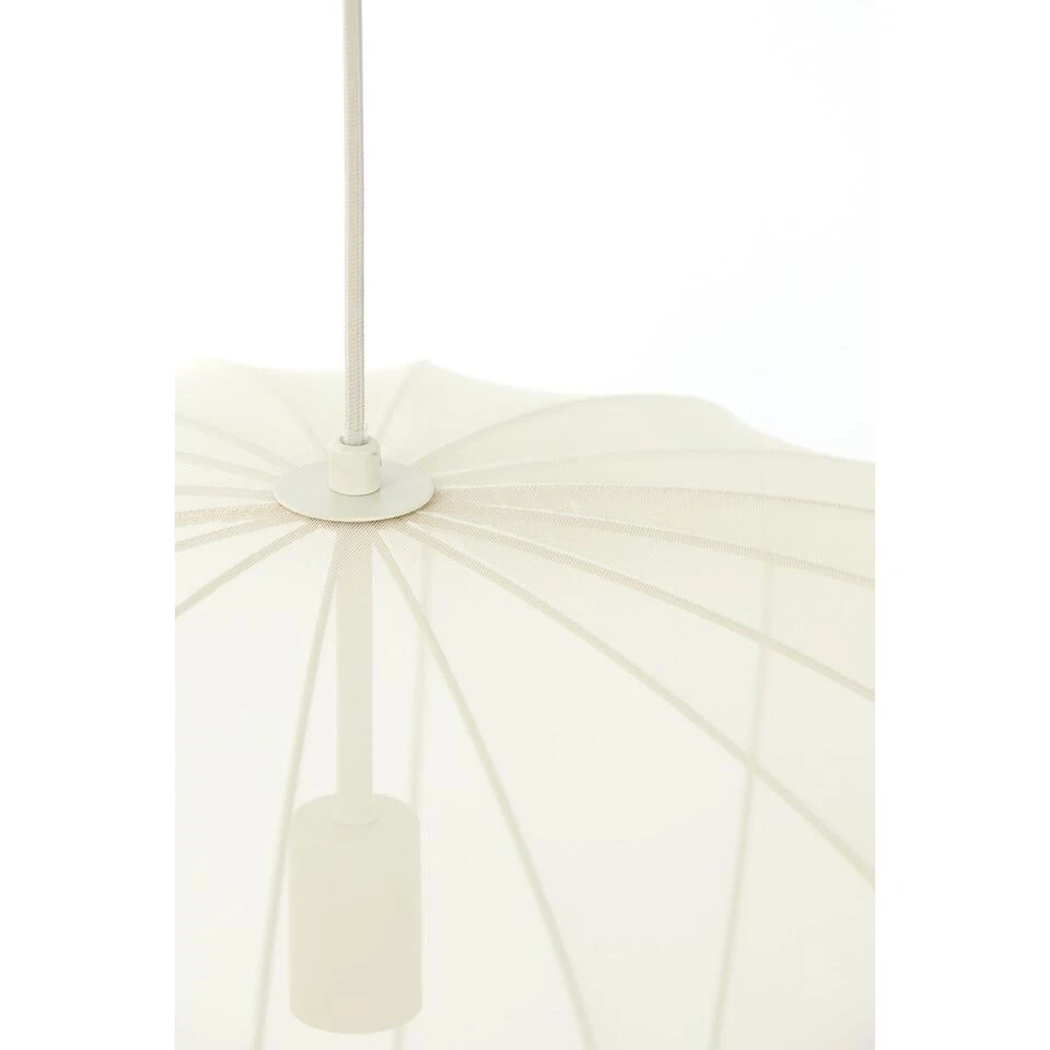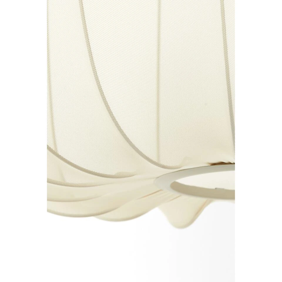 Dompel jezelf onder in een warme en uitnodigende sfeer met de Plumeria hanglamp. Deze elegante lamp heeft een uniek kapontwerp met een zachte, zandkleurige textiele drapering rond een stevig metalen frame. Met een diameter van 60 cm creëert deze lamp een zachte en uitnodigende gloed, perfect om te relaxen in je slaapkamer of een vleugje verfijning toe te voegen aan je woonkamer. De combinatie van de natuurlijke textuur van de stof en de industriële touch van het metalen frame creëert een visueel intrigerend stuk dat past bij verschillende interieurstijlen.