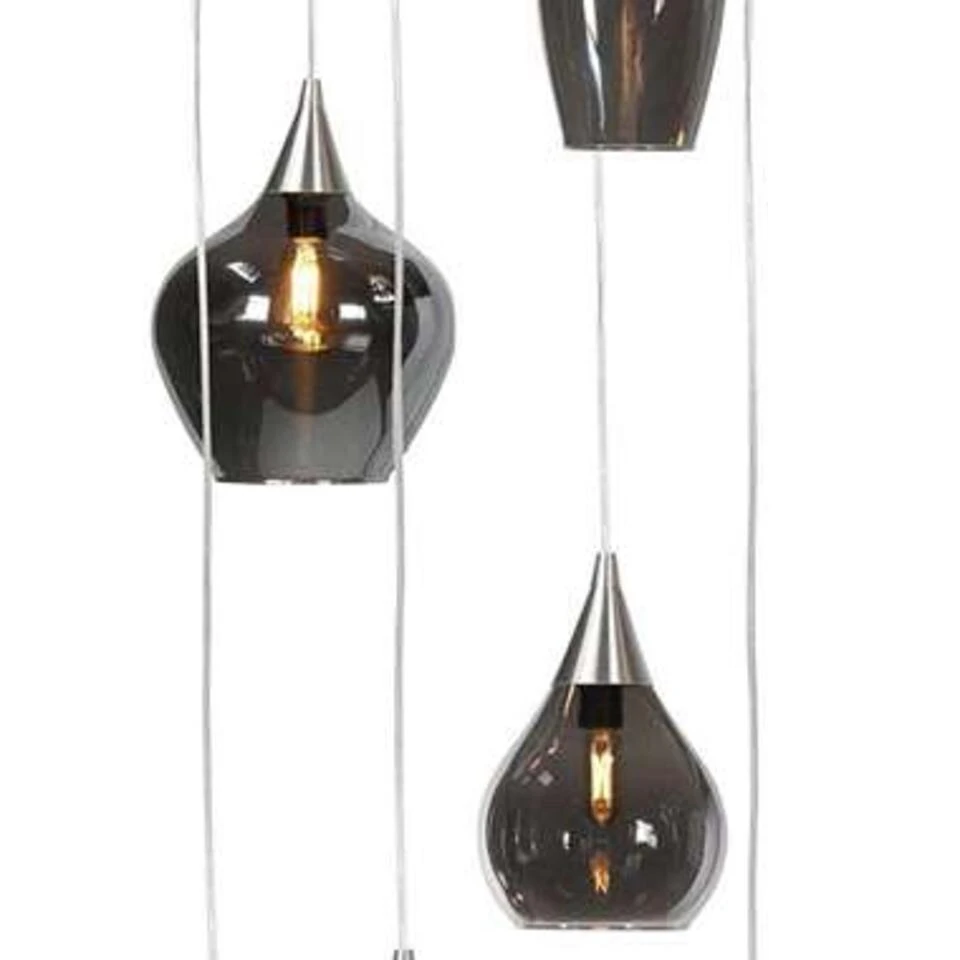 De Cambio hanglamp van leverancier Highlight is voorzien van 6 glazen die een rook kleurige coating hebben. Deze lamp heeft 3 verschillende soorten kelken met een diameter van 12-20 cm en een hoogte van 18-25 cm. De totale hoogte van dit armatuur is instelbaar maar maximaal 150 cm, de plafondplaat heeft een diameter van 46 cm. Geschikt voor lichtbronnen van maximaal 40 Watt E14 (excl.), kleur: mat-chrome plafondplaat met transparant snoer en rook kleurig transparant glas.