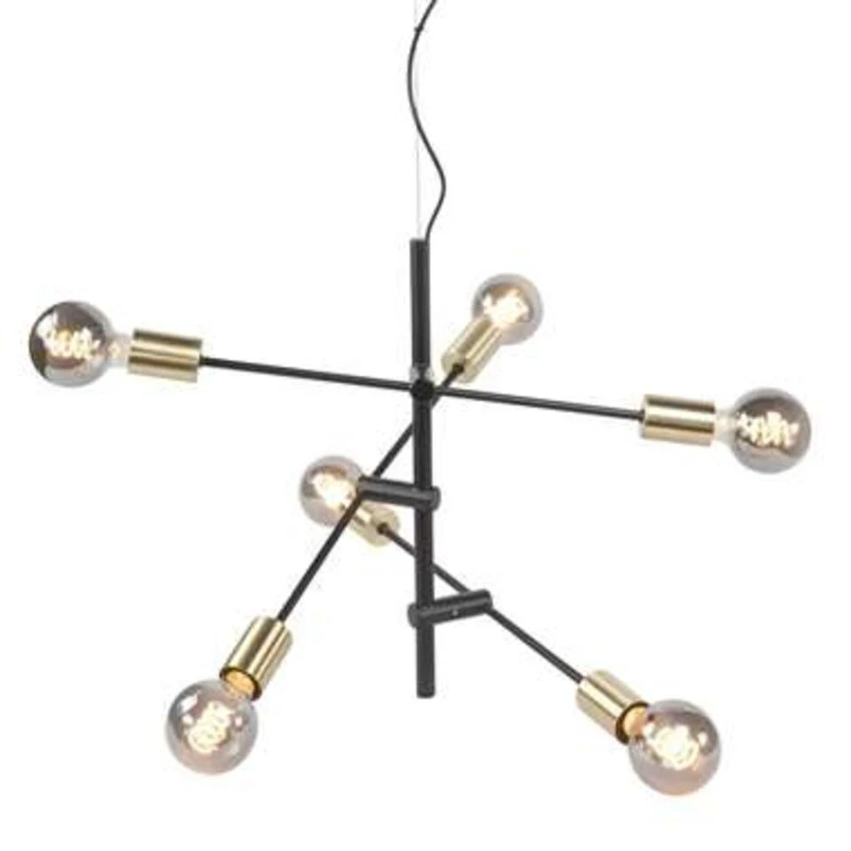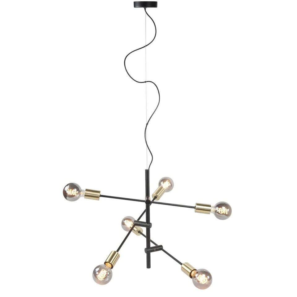Deze leuke hanglamp van Highlight is geschikt voor 6x E27 lichtbronnen van maximaal 60 Watt (wordt geleverd excl. lichtbronnen). De armen zijn te draaien en hebben ieder een lengte van 55 cm. Kleur: zwart i.c.m mat-messing.