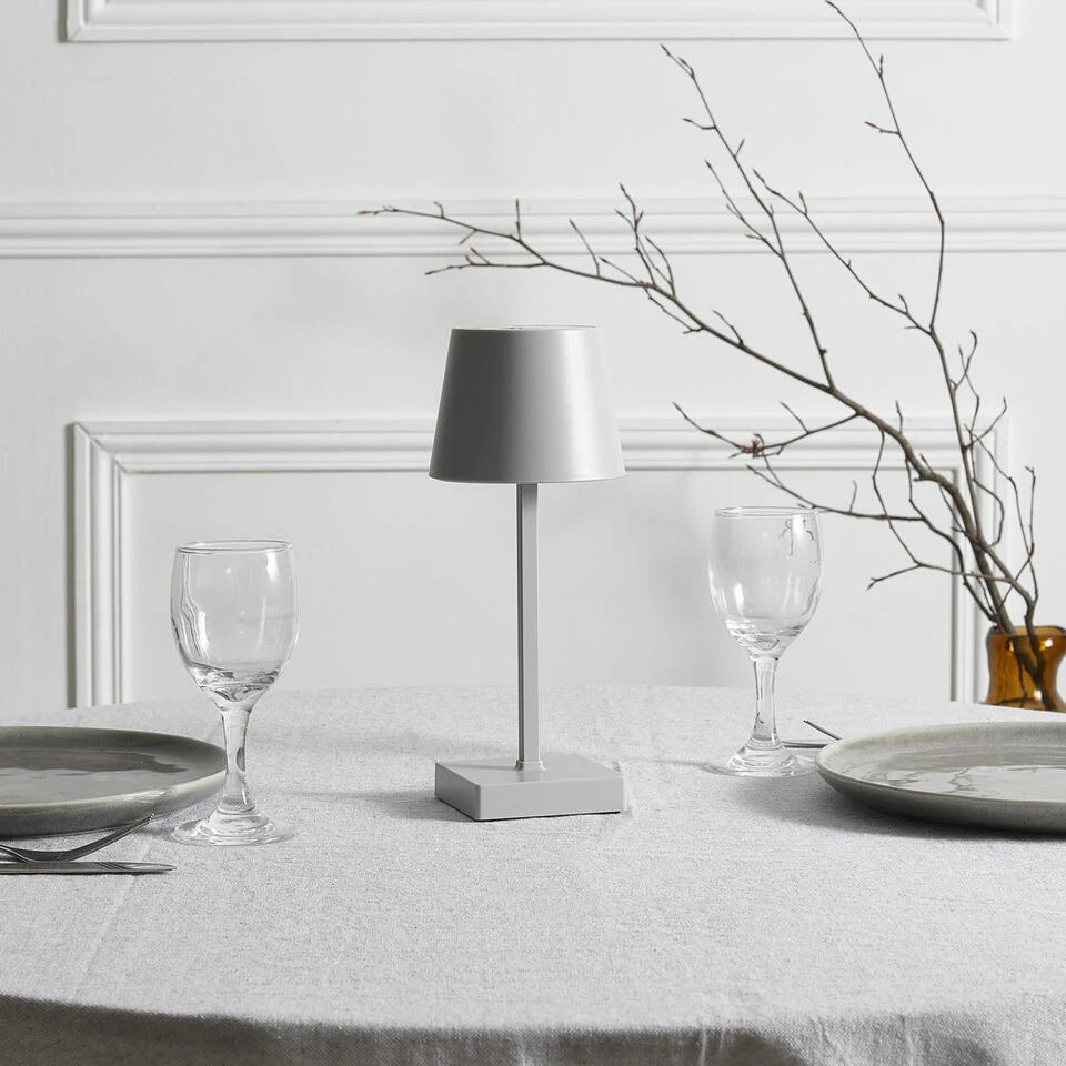HOME DECO FACTORY zilver/grijs touch LED tafellamp. Breng stijl en sfeer in huis met deze elegante Solar LED tafellamp in een zachte zilver/grijs kleur. Met een hoogte van 26 cm is deze compacte, maar opvallende lamp perfect geschikt voor gebruik binnenshuis. Dankzij de ingebouwde touchbediening kun je eenvoudig schakelen tussen verschillende lichtstanden met slechts een aanraking. De lamp is van kunststof en werkt op batterijen (2x AA niet meegeleverd).