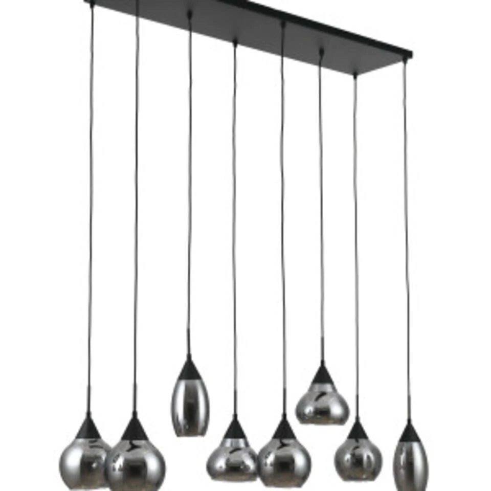 Deze trendy 8-lichts hanglamp is uitgevoerd met 8 verschillende glazen kapjes. Deze kunnen naar eigen inzicht op speelse wijze in hoogte versteld worden. Wij hebben deze hanglamp beschikbaar in diverse afmetingen. De lampenkappen zijn gemaakt van bruin glas. Het donkere smokey glas zorgt voor een sfeervolle ruimte.