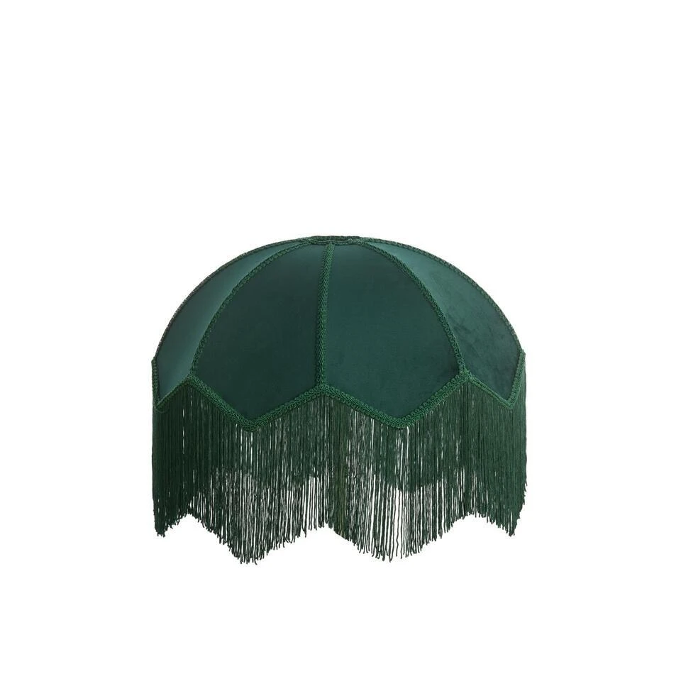 - Donkergroene fluwelen stof en franjes aan de onderkant