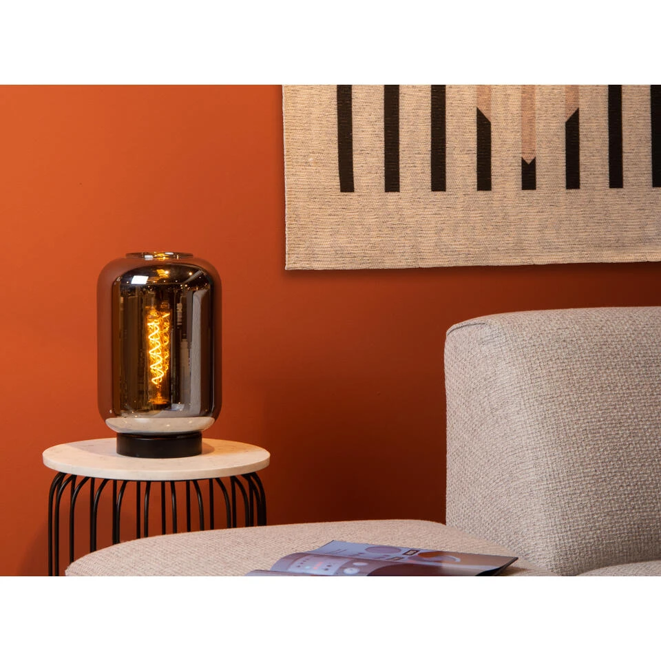 Nog steeds op zoek naar de geschikte tafellamp? Dan heb je Joanet nog niet ontmoet. Uitgevoerd in fumé glas biedt hij ruimte voor een krachtige lichtbron die gezien mag worden. Joanet is een cilindervormige tafellamp van 22 centimeter breed en 35 centimeter hoog. Een prominente en welgekomen gast in je woonkamer, aan de bijzettafel of op de commode. Of zo je het wil, de ideale compagnon op het nachtkastje. Joanet bedien je met de schakelaar op het snoer.