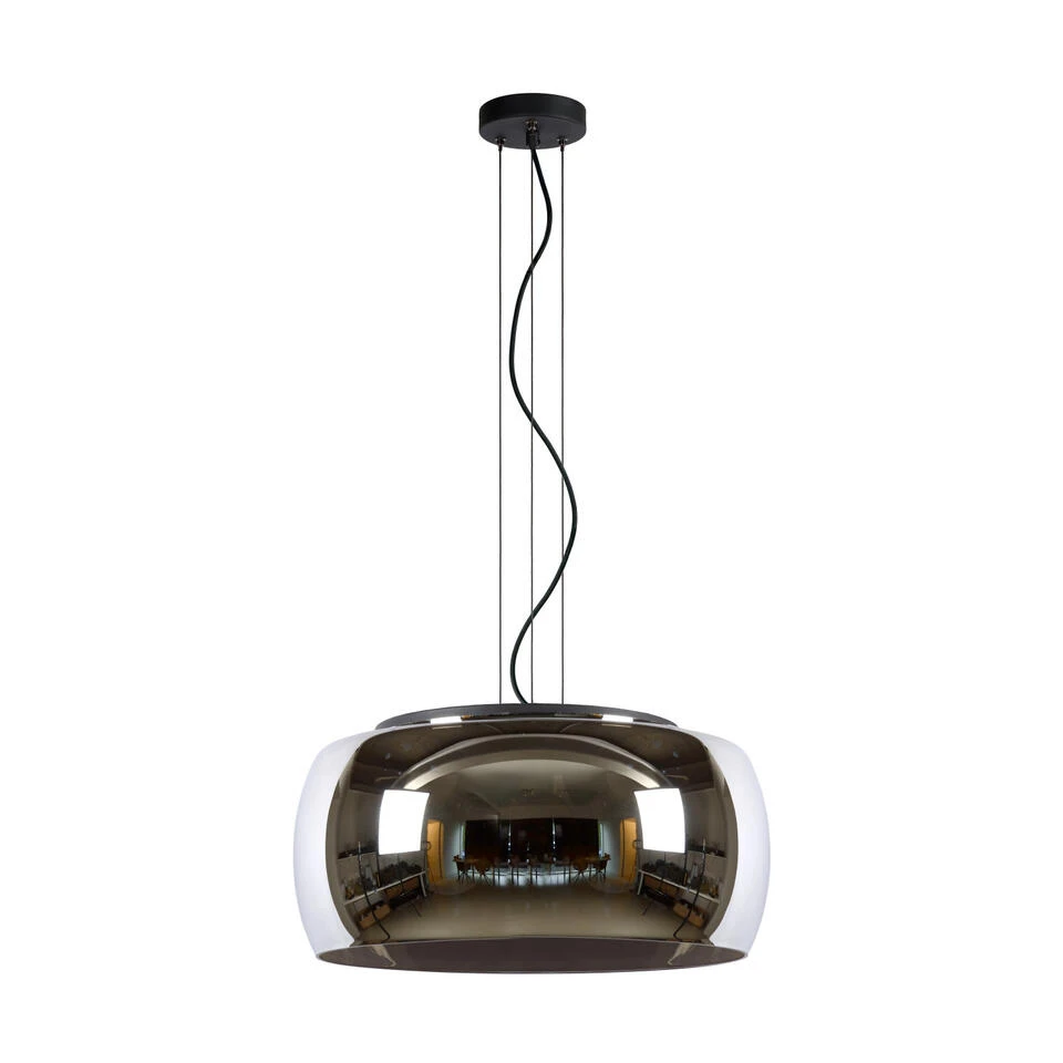 Een retro look met een eigentijds karakter. Zo omschrijf je deze karaktervolle, ronde hanglamp nog het best. Olivia is een opvallende accessoire voor je woon- of eetkamer. Met een diameter van 50 centimeter en een maximale hoogte van 180 centimeter kan je niet om haar heen. Haar drie lichtbronnen steekt ze subtiel weg achter fumé glas. De lampenkap is opengewerkt naar onderen toe. Voor de juiste lichtsterkte op elk moment sluit je Olivia het best aan op een externe dimmer.