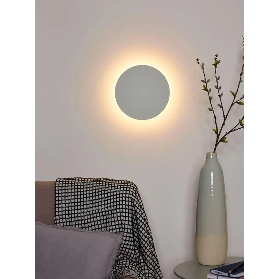 Genieten van een charmant lichtspektakel Met Eklyps LED heb je elke dag de kans. Deze knappe led-schijf is een wandlamp dat heel wat sfeer met zich meebrengt. Het effect van Eklyps LED op je muren mag gezien worden. In een modern interieur komt hij overal tot zijn recht. Kies zelf de beste plek. Dat kan zowel in je eetkamer, hal, open leefruimte als in je slaapkamer zijn. Achter een strakke metalen schijf zorgt een led-ring voor een mooie gloed die zich 360 graden verspreidt. Eklyps is een sfeermaker pur sang. Met een diameter van 25 centimeter heb je met één exemplaar genoeg om een kleine ruimte van gezellig licht te voorzien.