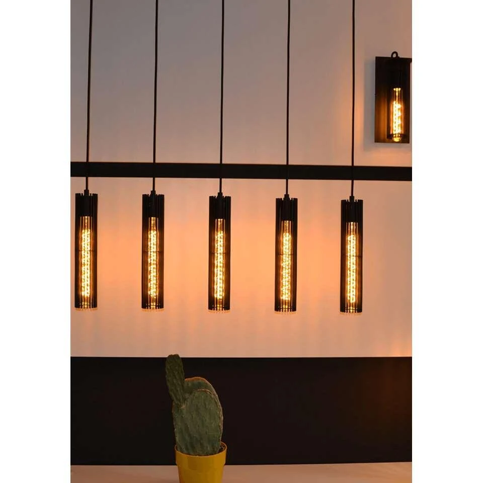 Deze moderne wandlamp heet Lionel. Hij bestaat uit zwarte, smalle metalen staafjes rond de lichtbron met een op de achtergrond een zwarte metalen plaat van 12 op 19 centimeter. Hij verleidt elke bezoeker die je gang binnen wandelt. Ook in woon- en eetkamers is hij een graag geziene gast. Lionel pas je volledig aan je noden aan. Zo kan je de wandverlichting aansluiten op een dimmer. Combineer met de juiste buisvormige ledlamp voor een optimaal resultaat en de ideale sfeer.