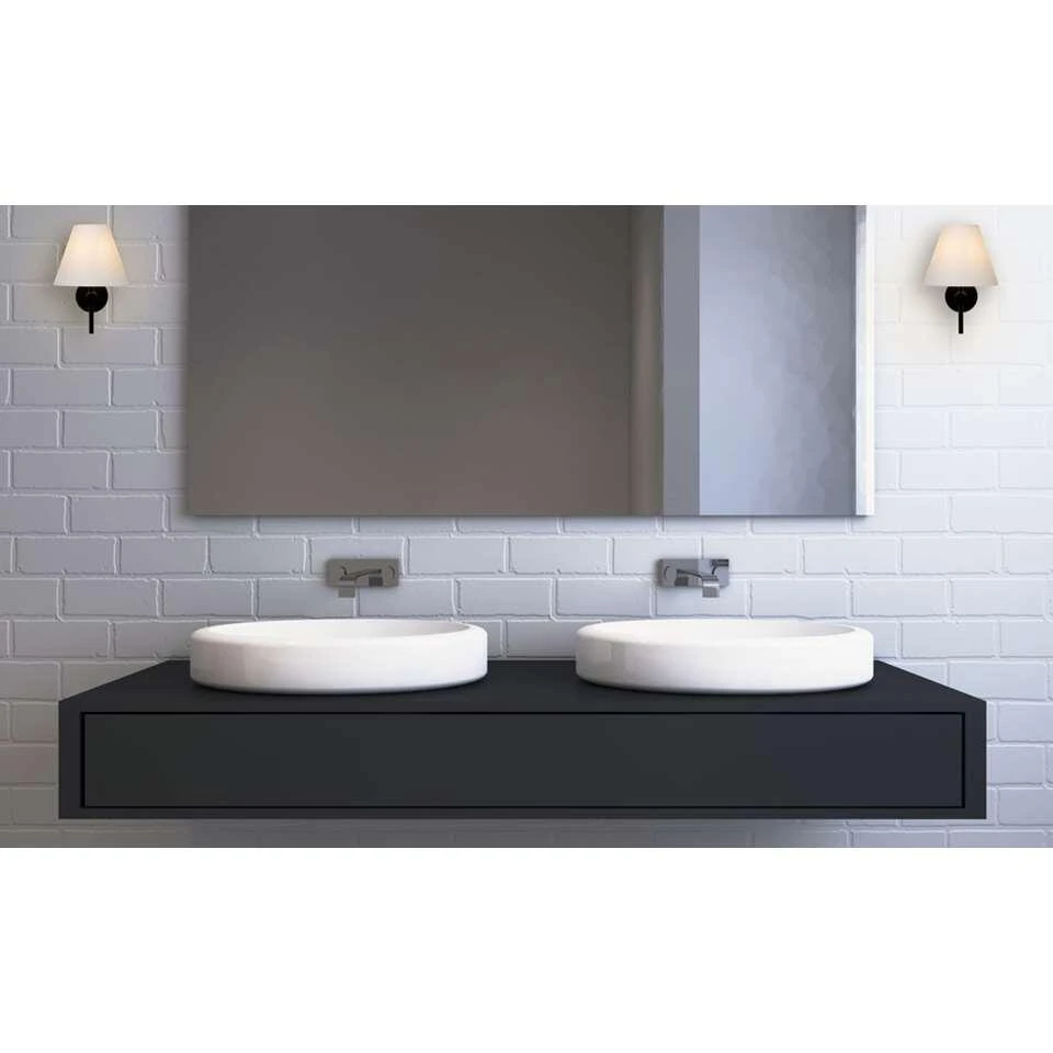 Een klassiek ontwerp in moderne materialen en kleuren gegoten. Dat is Roxy. Deze wandlamp is speciaal gemaakt voor veilig gebruik in vochtige ruimtes zoals je badkamer. Wil je je strakke badkamer een ietwat landelijke toets geven? Dan kan dat met Roxy. Het zwart, metalen armatuur steekt af tegen de opaalkleurige glazen kap waaronder de lichtbron zit. De twee knopjes aan de achterzijde houden de kap samen en maken het hele ontwerp net iets origineler. Je kan Roxy ook aansluiten op een dimmer.