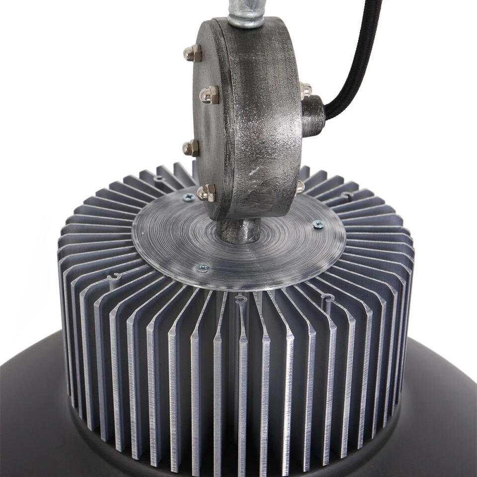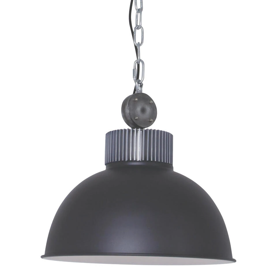 Stoere mat zwarte hanglamp uit de Mexlite Dinko serie. Voorzien van een E27 (grote) fitting en geschikt voor lichtbronnen tot 60 Watt, deze wordt niet mee geleverd. Door mat zwart te combineren met geborsteld staal krijgt de lamp een modern/industrieel uiterlijk, hier door is hij goed te matchen met elk interieur. Tijdens het monteren is de Mexlite Dinko in hoogte verstelbaar van 53 centimeter tot 139 centimeter, de doorsnede van de kap is 42 centimeter.