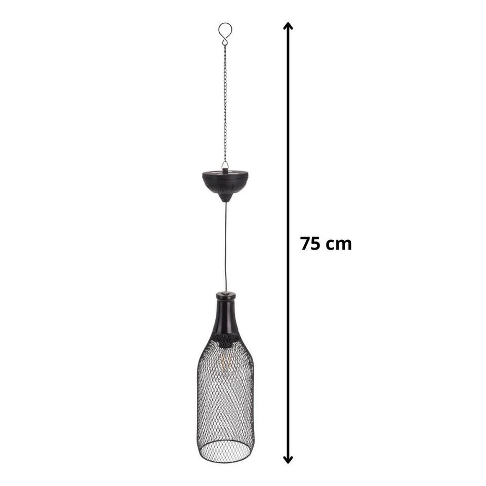 Verlicht je tuin met deze duurzame solar hanglamp gemaakt van metaal. Deze lamp heeft een prachtige industriële uitstraling en werkt volledig op zonne-energie. Zorg ervoor dat het zonnepaneeltje boven de lamp blootgesteld wordt aan zonlicht. Op een normale zonnige dag duurt het ongeveer 8 – 12 uur om de batterij volledig op te laden. Een volle batterij heeft een brandduur van max. 6 uur. Wanneer het donker wordt, gaat de lamp automatisch aan en geeft deze een warm-wit licht. Op de bovenkant van de lamp zit een aan/uit knop om de lamp handmatig te bedienen. Let op: de lamp laadt niet op als de schakelaar op uit staat