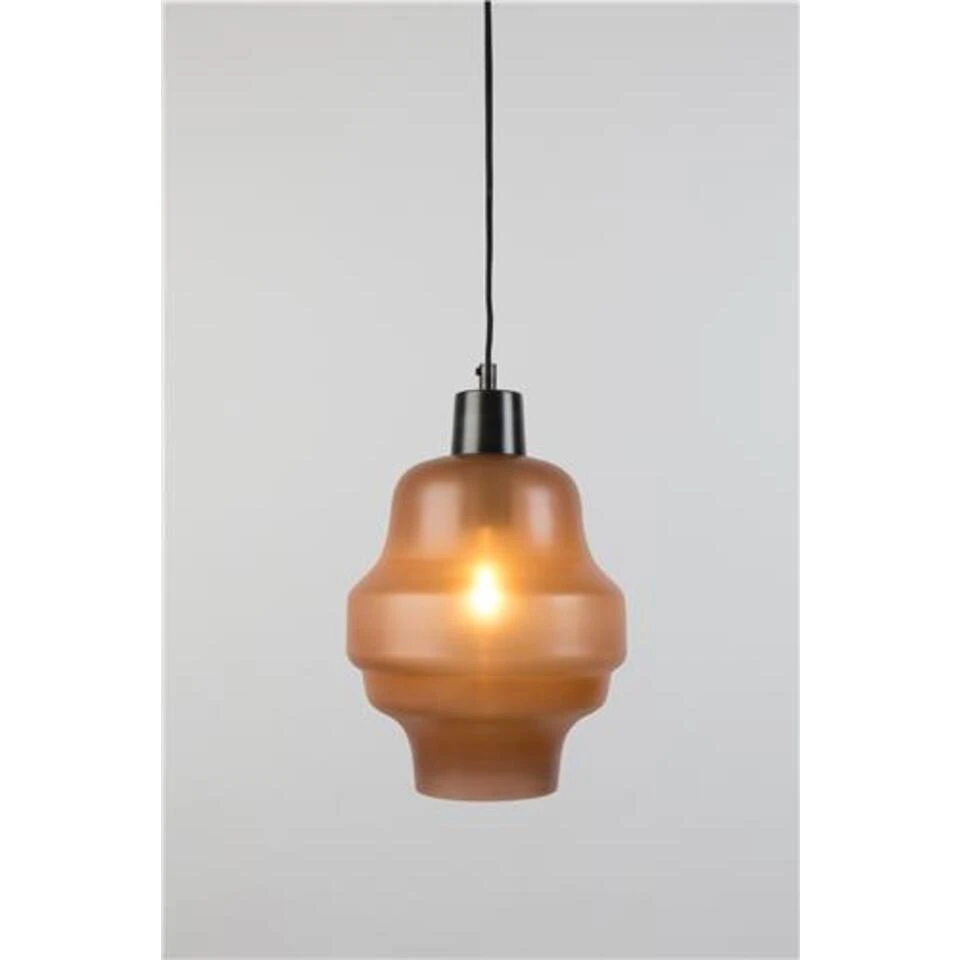 De bijzonder gevormde glazen kap is gemaakt van gekleurd glas dat ’s avonds een spectaculair lichteffect geeft. Mix and match het met andere hanglamp voor een extra mooie toevoeging aan je interieur.