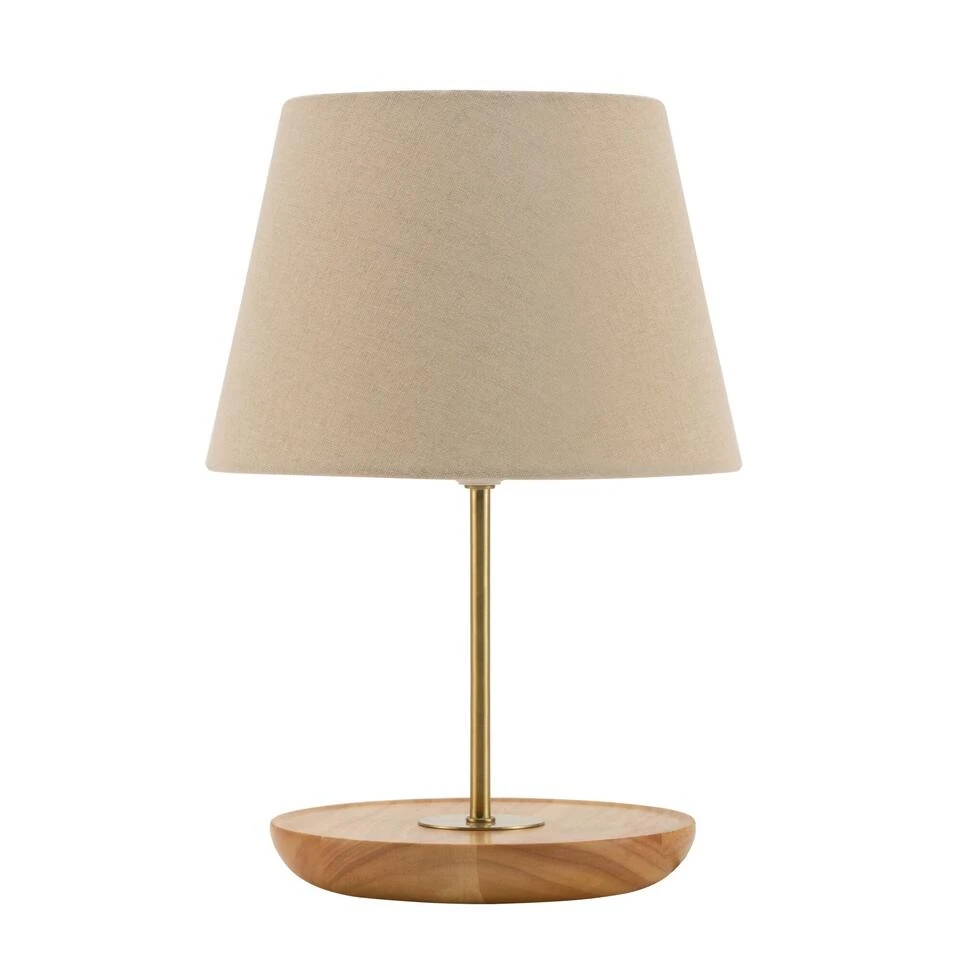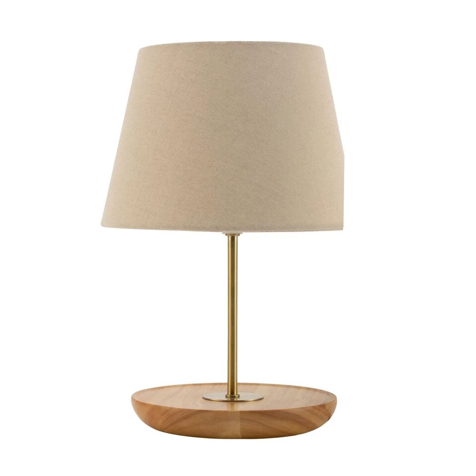 Tafellamp Woody Heart past perfect bij een woonstijl met natuurlijke kleuren. De tafellamp combineert een natuurlijk houten basis met een beige stoffen lampenkamp. De goudkleurige lampvoet geeft het armatuur een vleugje glamour. De Woody Heart tafellamp heeft een snoer, stekker en snoerschakelaar voor het in- en uitschakelen van het licht.