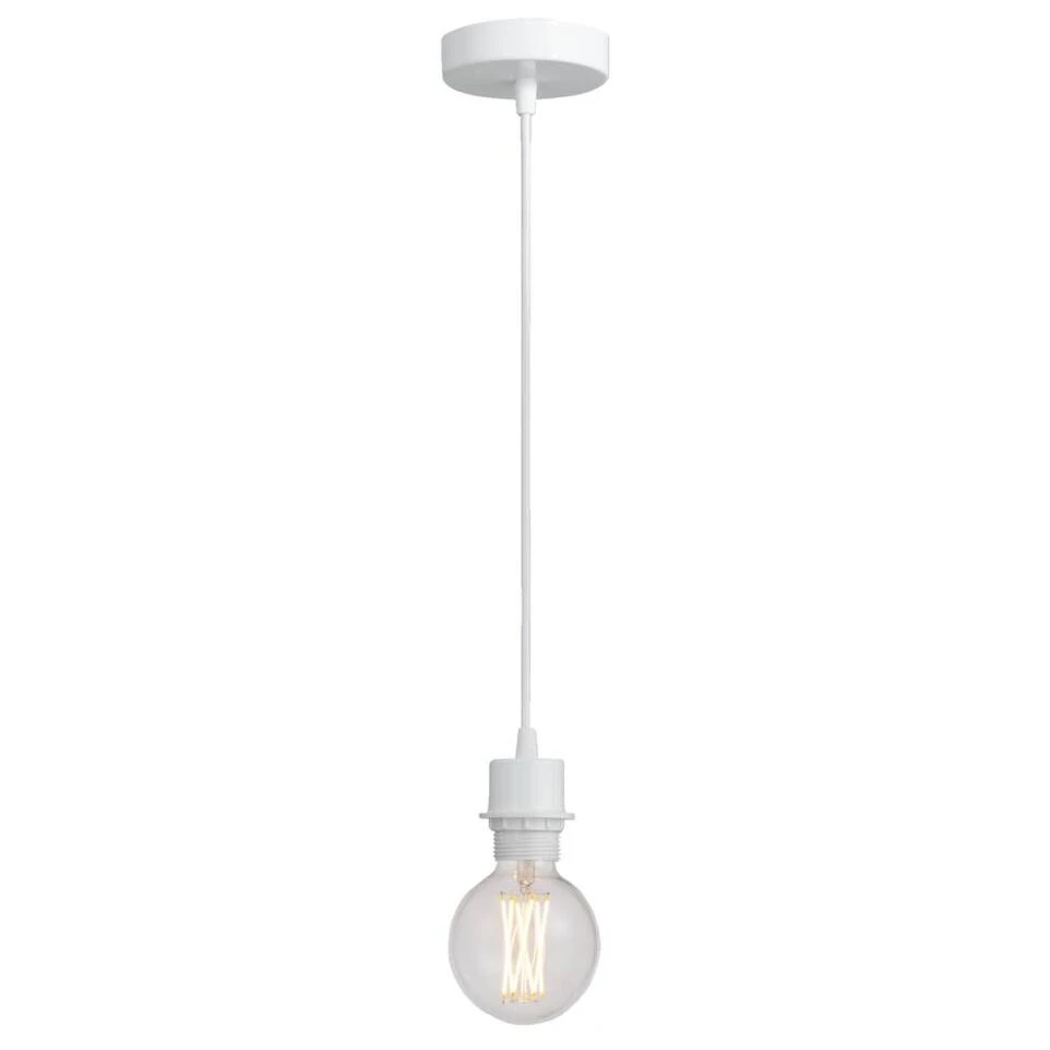 Pendel hanglamp in de kleur wit met een E27 fitting. De totale hanglamp heeft een lengte van 100 cm en heeft een moderne uitstraling. De lamp is te bedienen met een klikschakelaar en heeft een schroefdraad beschikbaar om een lampenkap toe te voegen. Lichtbron niet inbegrepen.