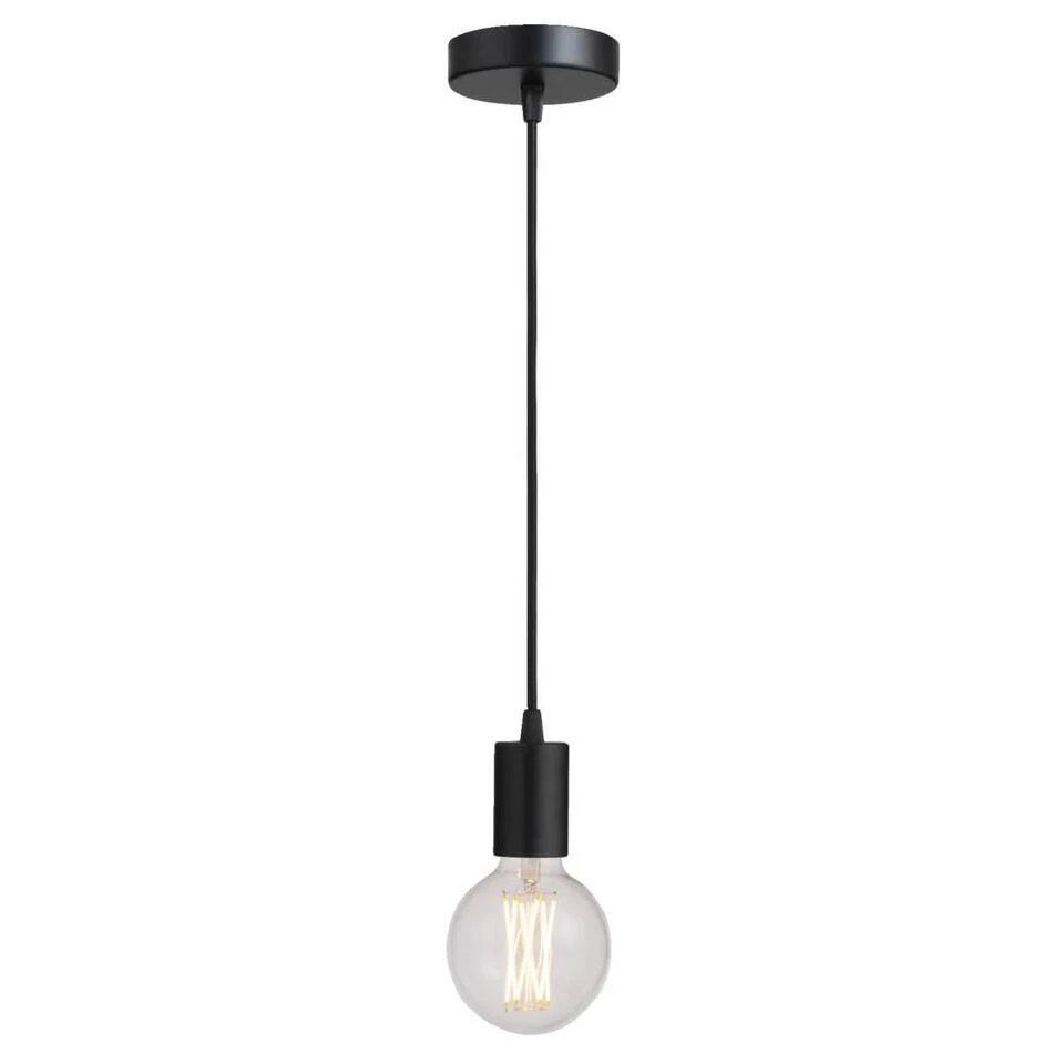 Pendel hanglamp in de kleur zwart met een E27 fitting. De totale hanglamp heeft een hoogte van 200 cm en heeft een moderne uitstraling. De lamp is te bedienen met een klikschakelaar. Lichtbron niet inbegrepen.