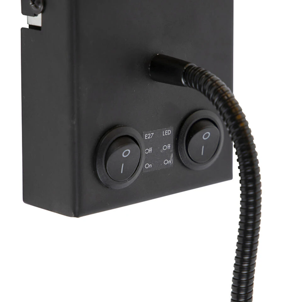 Een Art Deco touch in je interieur, dat is deze Stacca. Deze wandlamp is perfect om je muur een retro look te geven. Het is een praktische en stijlvolle wandlamp uitgevoerd in een donkergrijze velours kap met gouden binnenkant. Dat zorgt voor een leuk lichteffect in de kamer. De charmante wandlamp is zo gemaakt om jou te voorzien van de perfecte verlichtingscombinatie door de ingebouwde leeslamp die je zelf kan verstellen naar jouw zin. Met een lichtbron voor een E27 fitting (40 Watt) maak je de Stacca af. De leeslamp beschikt over een geïntegreerde LED module van 100 lumen en 2700 Kelvin (warm licht). Hij is handig in gebruik, dankzij de aan/uit knoppen op de montageplaat van de lamp. Hierdoor is de lamp en de leeslamp afzonderlijk te bedienen. De kap heeft een diameter van 16 cm. De complete wandlamp heeft een hoogte van 47 cm. De flexibele leesarm heeft een lengte van 24 cm. Perfect als leeslampje in jouw slaapkamer!