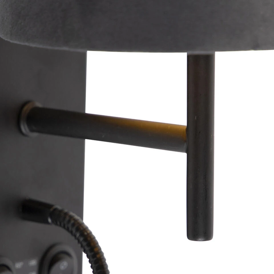 QAZQA Art Deco Wandlamp Zwart Met Velours Donkergrijze Kap – Stacca