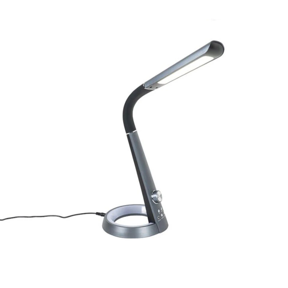 Manuel is een super toffe tafellamp. Niet alleen door zijn prachtige design, maar hij is ook nog te verstellen in lichtkleur. Naast dat hij gewoon gebruik maakt van LED verlichting is de kleur van het licht van de voet te verstellen naar rood, groen, blauw en paars. Manuel heeft een lichtvermogen van 450 lumen en 3000-6000 Kelvin. Het leesgedeelte van de tafellamp is dimbaar, zo heb je altijd de perfecte lichtsterkte! Manuel is gemaakt van aluminium met kunststof en is afgewerkt in het zwart. Hij heeft een hoogte van 45 cm, lengte van 32 cm en breedte van 17 cm. De voet heeft een diameter van 17 cm. Manuel wordt inclusief snoer (130 cm) en stekker geleverd. Zorg voor aangename verlichting op kantoor of thuis tijdens het lezen van de krant met tafellamp Manuel!