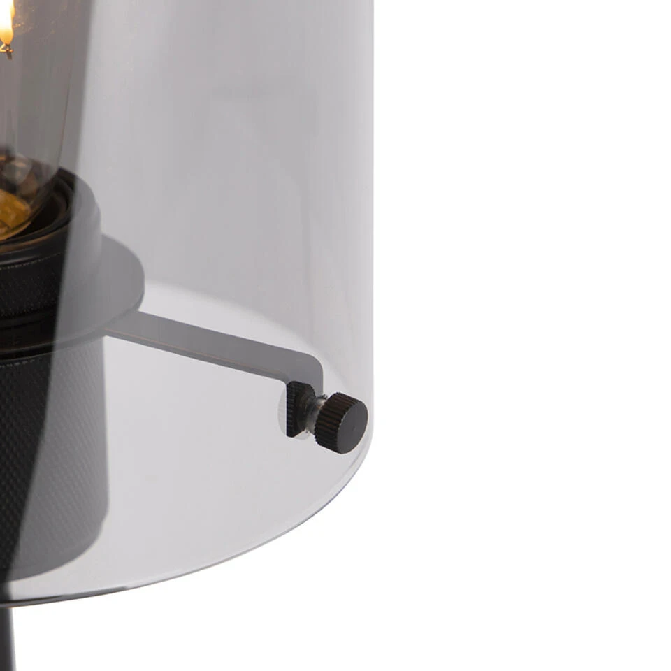 QAZQA Design Tafellamp Zwart Met Smoke Glas Op Standaard – Dome