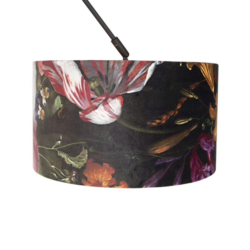 QAZQA Hanglamp Met Velours Kap Bloemen Met Goud 35 Cm – Blitz I Zwart